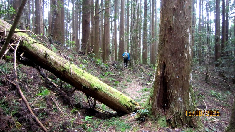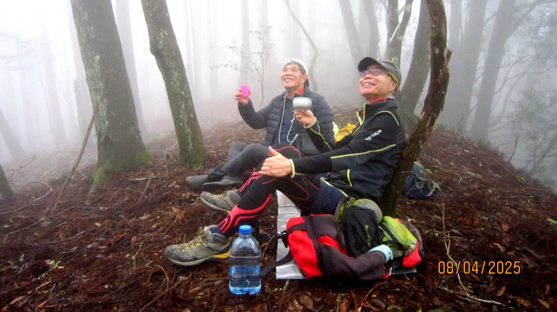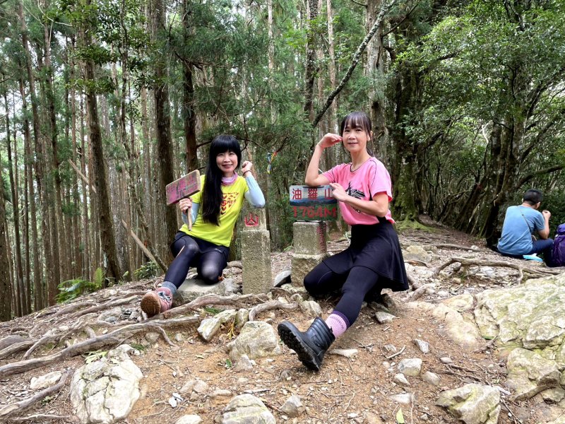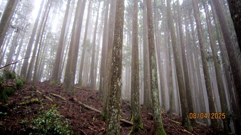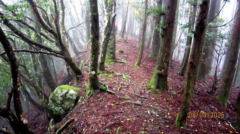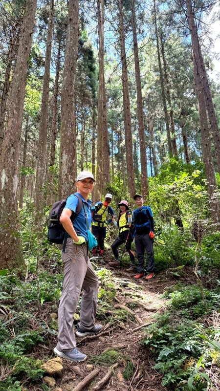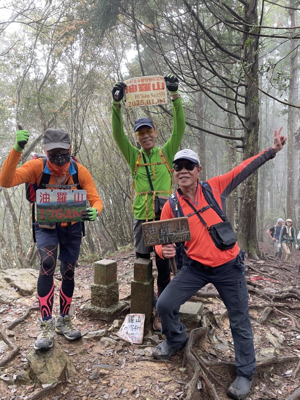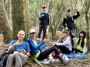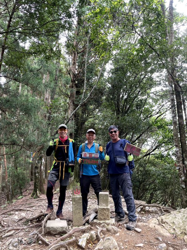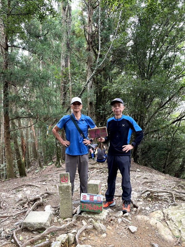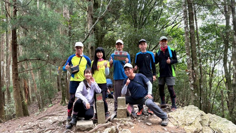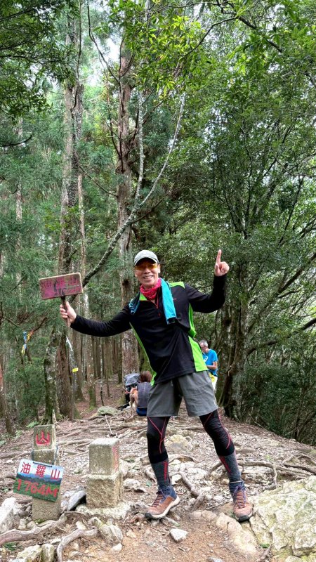 油羅山林相蒼鬱優美,貌似加里山前段,深受山友喜愛。遊走中,但見山友們絡繹於途。 ( 圖 : 上回 2025.4/8 到訪,峰頂巧緣偌大山隊。)