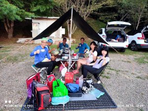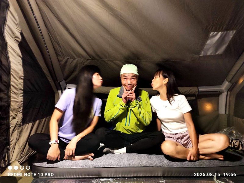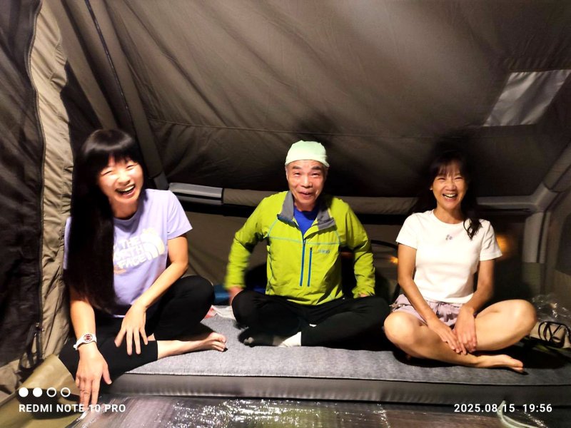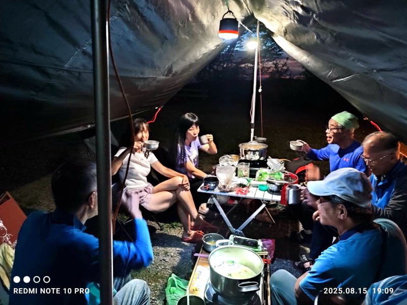 哈哈,昔日同公司登山隊+跑馬隊師徒3人組,上演盤絲洞戲碼:2蜘蛛精魅惑師父 ~ 黃三藏修練定力! 22:00 晚安曲響起 ~ 夢裡也會微笑 ... 山野寂靜,常爬山露營者適應力較強,就是一夜好眠!