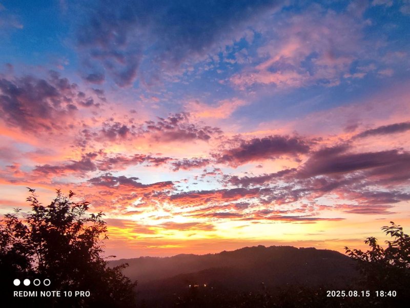 享受這稍縱即逝的璀璨彩霞美景,靜靜地守著那最後的夕陽落下,等待夜幕垂降。 彩霞奇景瞬間消逝,釋然青山永遠都在,知足曾經擁有。