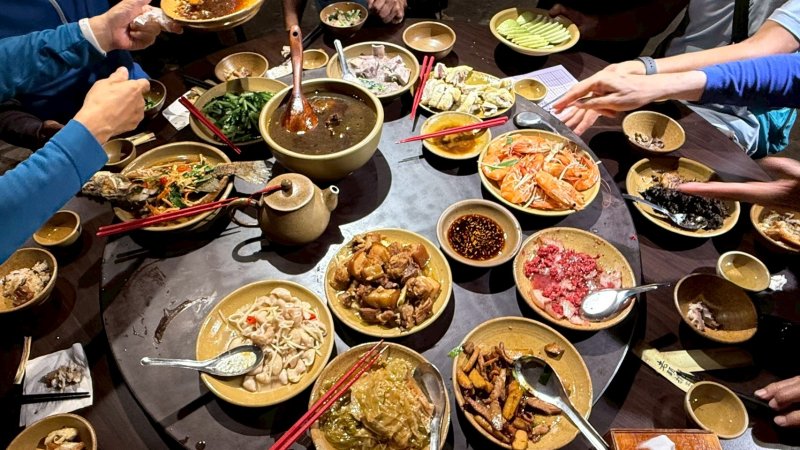 晚餐時間,阿旺隊長費心思備好豐盛火鍋食材。