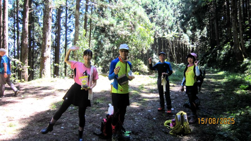 【策馬入林】8/15(週五) 07:30中和交流道南向-新竹(關西),轉往橫山(內灣) 尖石-09:50 抵五峰(天景露營場最上層D區)。 下車登油羅山整備,晴朗天候,氣溫26度舒適。10:00準時出發。阿旺隊長前導,北雁依例押隊守護+揹公水。