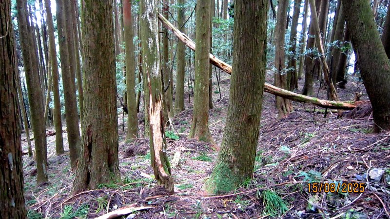 如想擇定適宜目標點 ~ 走到前有諸多倒木寬廣場域,此處較平坦易識別相對安全。取出備用麵包,請他收下當午餐。暫待原地等候,或沿著解說路徑方向+叮嚀識別安全要點,斟酌體能狀況,慢慢前行。