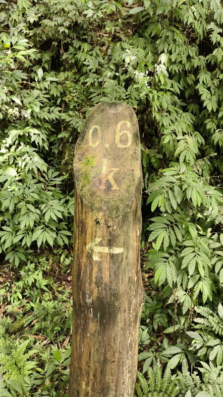林道入口前,還有個里程樁,字跡模糊,應該是標示0k或起點吧!