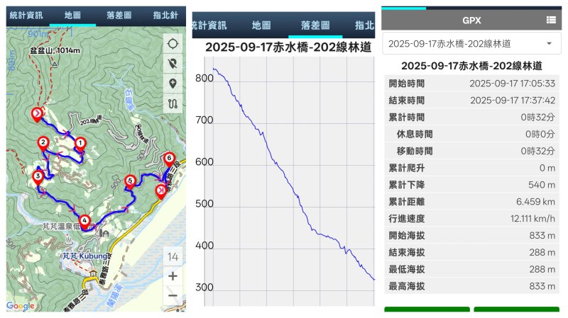 軌跡記錄-2: 林道起點~芃芃連絡道路赤水橋端之行車路線