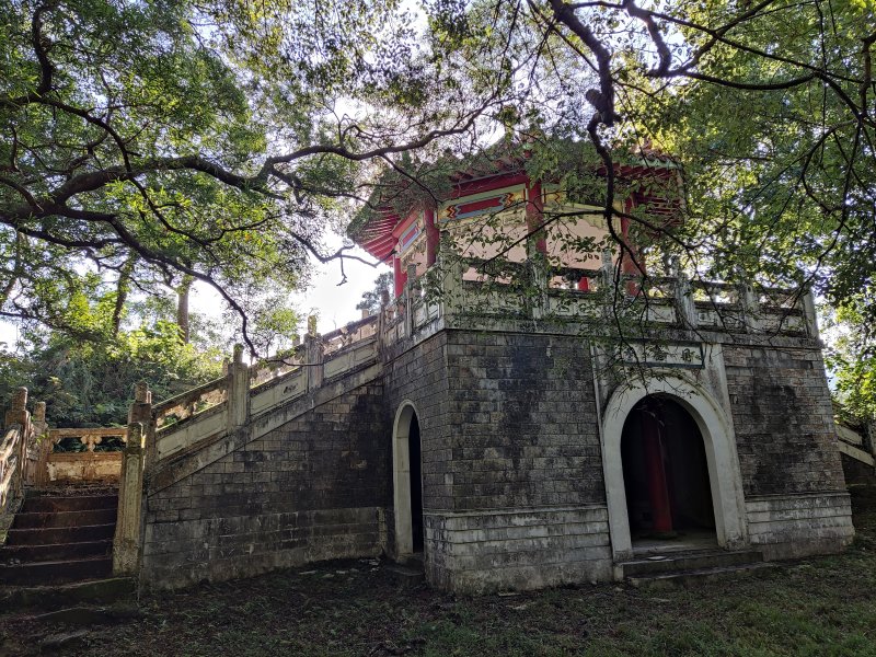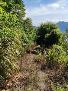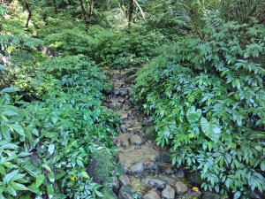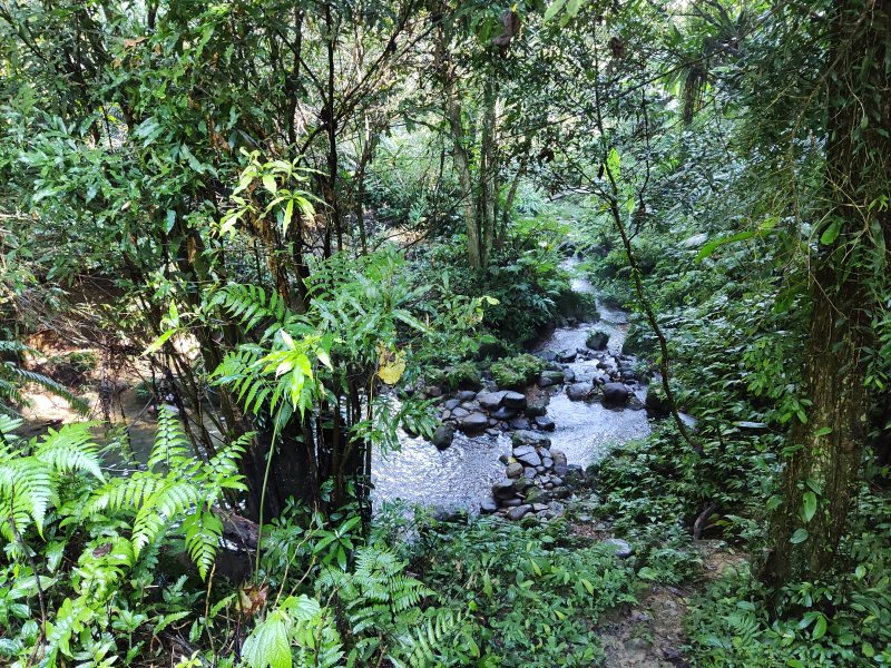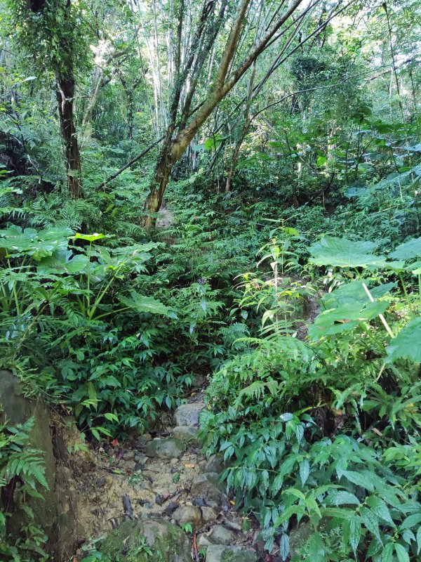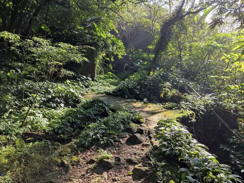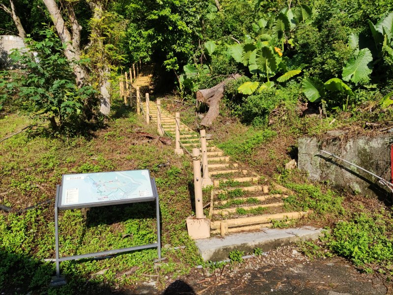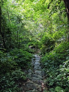 從石門水庫依山閣後方登山口起登, 此路線也稱小竹坑古道. 一開始就是長長的階梯, 碎石鋪的路面, 走起來還算舒適.