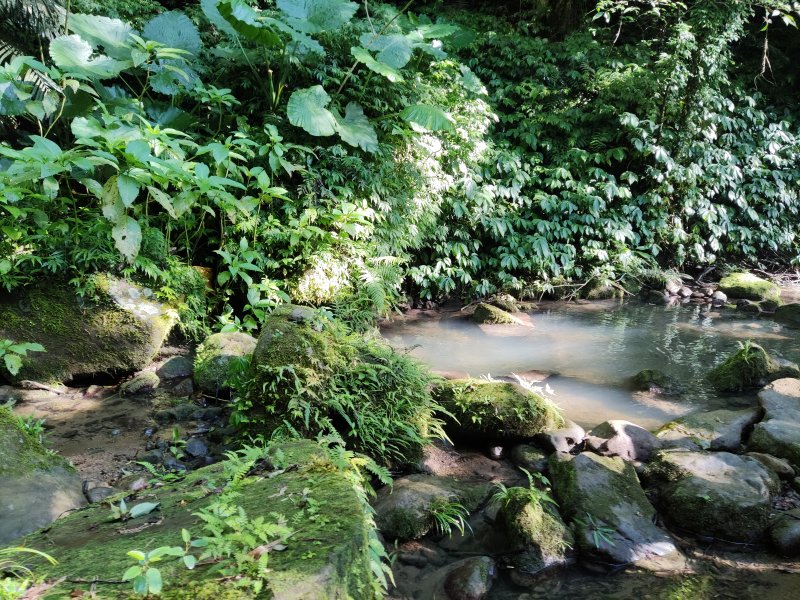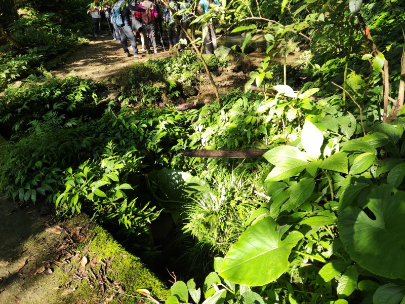 遇到一群山友駐足觀賞山溪魚群, 有人把乾糧麵包投入餵食.