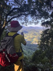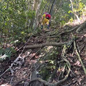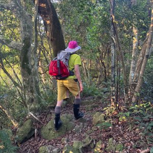 115.10.05-赤科山輕鬆走 李淑娟 2025-10-05 發表 342 次點閱 6 次拍手 拍個手吧 收藏 檢舉 分享 分享至 Facebook LINE 一日行程 出發日期 2025/10/05 回程日期 2025/10/05 相關路線 關西赤柯山、東獅頭山步道 相關山岳 關西 本文為網友的心得,以下內容不代表健行筆記立場。 Day 1 2025/10/05 天元宮停車場 廟旁邊的小徑有登山口標示牌 開始啟登 不久看到好漢坡的指示牌 快上到赤科山三角點 赤科山三角點 07:16 可以看到老爺球場 赤科山南峰三角點 眺望平台 觀景平台 08:17 很好的展望點 有一些路段較陡有繩子可以輔助 又到三角點了 獅頭山三角點視野也不錯 下山的標示也很清楚 回到產業道路 往前看到玉山國小,離天元宮就很近啦