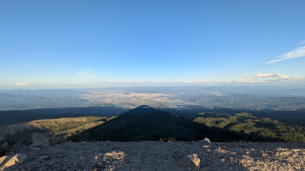 下午傍晚的時候,能看到整個火山的倒影,映在山下的市區上,難怪有小富士之名稱!