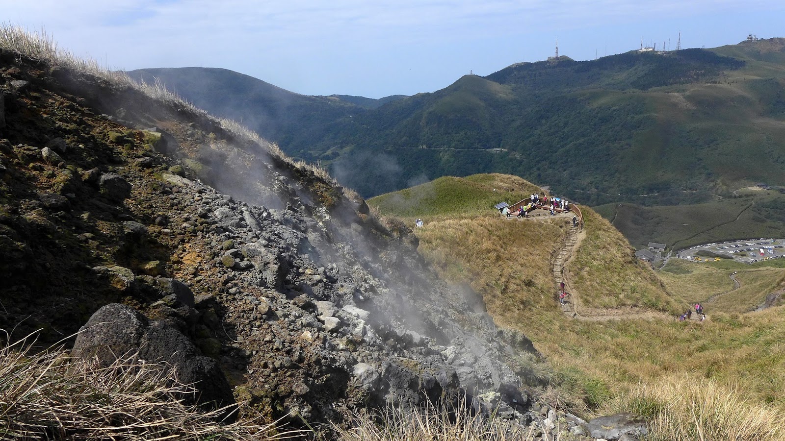 沿步道上有許多噴氣孔及濃濃的硫磺味