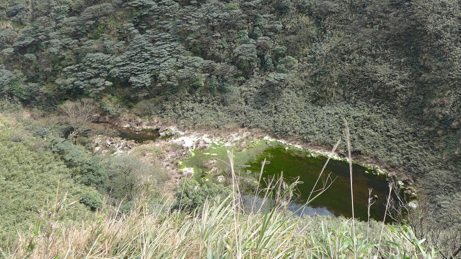 在此休息聊天時,真的有時有些人事物就是用很多巧合組合起來的一個結果,就像今天新認識國鈞夫妻檔,因為我睡過頭臨時跑到七星山來,剛好國鈞因為看到Jovi Lo七星池的照片才到七星池來看看,沒想到我也剛好認識Jovi,當下聊了一會問他們要不要一起走摘星坡,就這樣我此行多了2位同伴,國鈞他們則是走了不一樣的新路徑體驗。