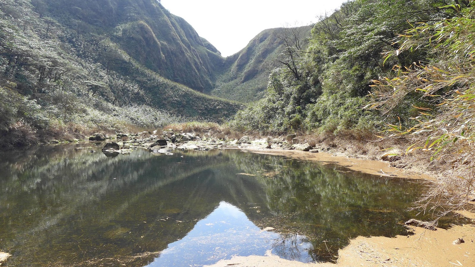 進步道沒一會往七星池轉進去,不用一會就能到達七星池,水位還挺高的,只到下池,中、上池就不去了,再這邊遇到一對夫婦,一聊還有彼此認識的朋友,也有在跑越野跑,邀他們一起來走摘星坡,走走不一樣的路線。