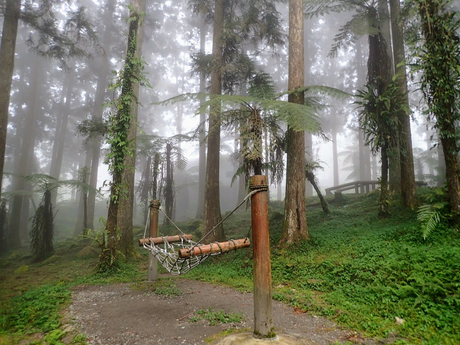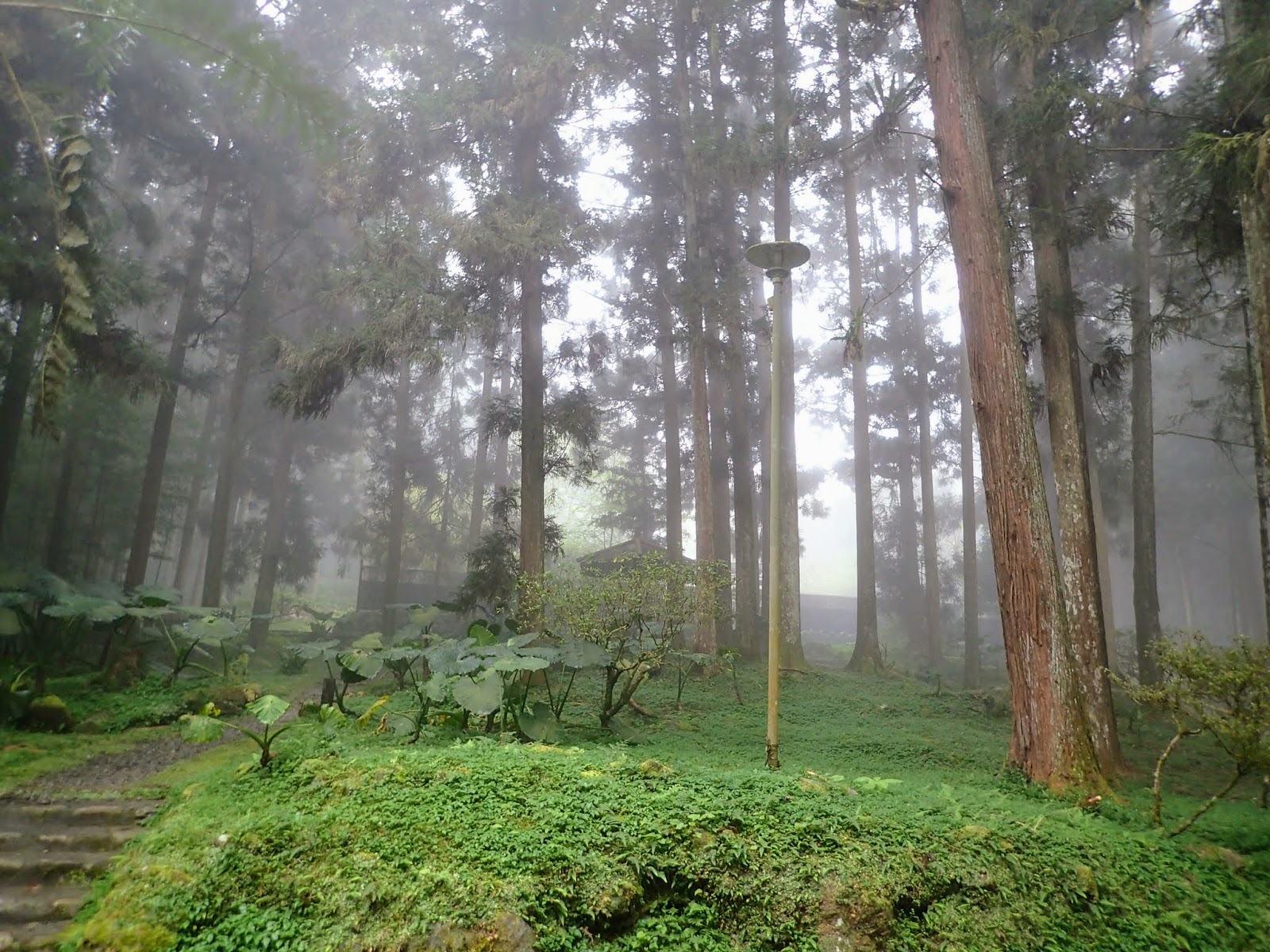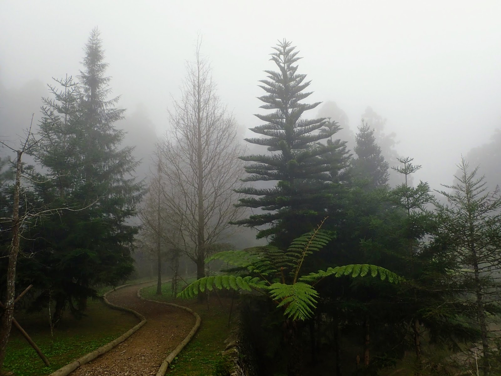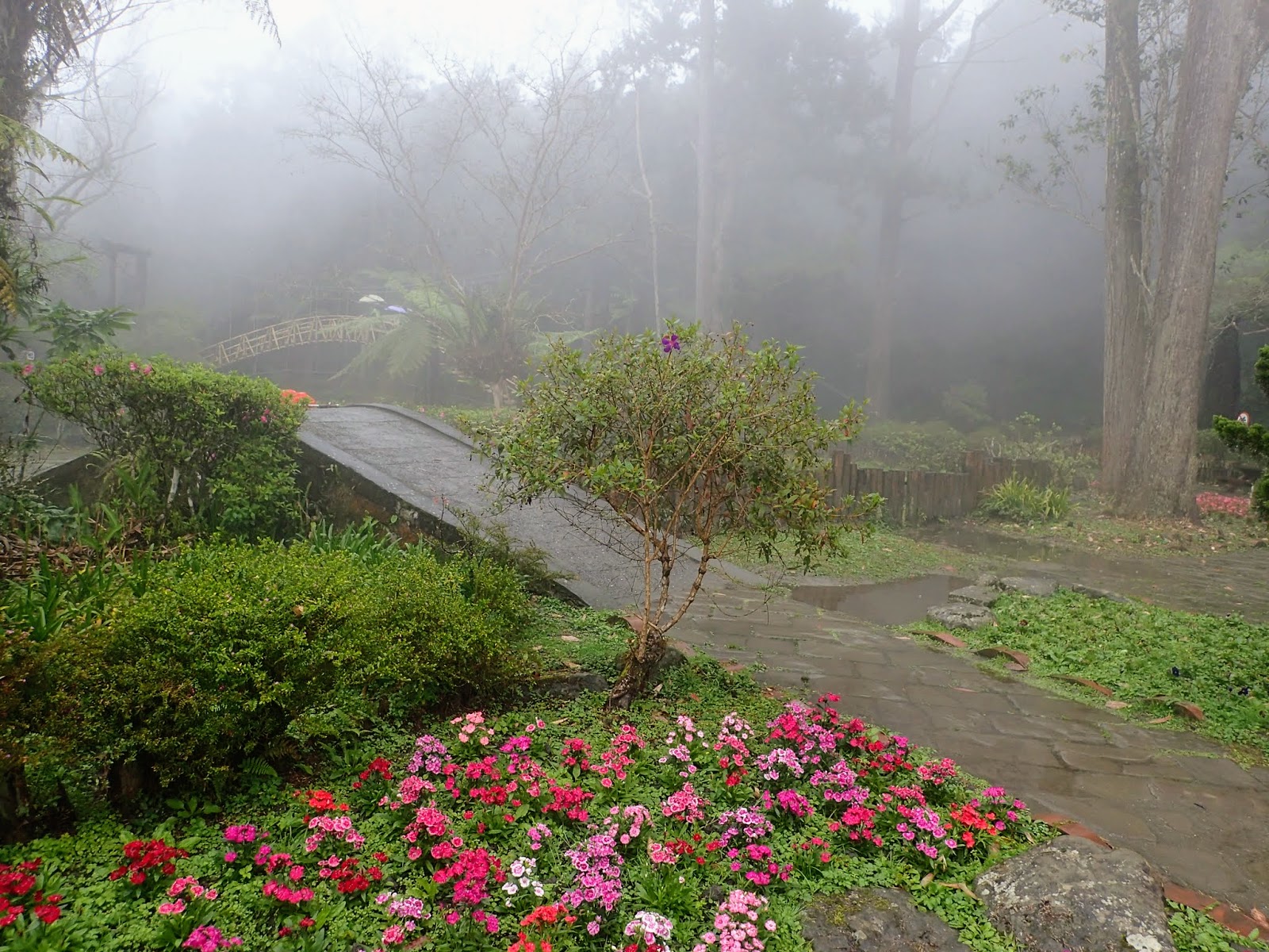 霧靄飄渺的景緻, 清新鮮活的空氣瀰漫著香氣, 恣意吸口氣, 滿滿的芬多精