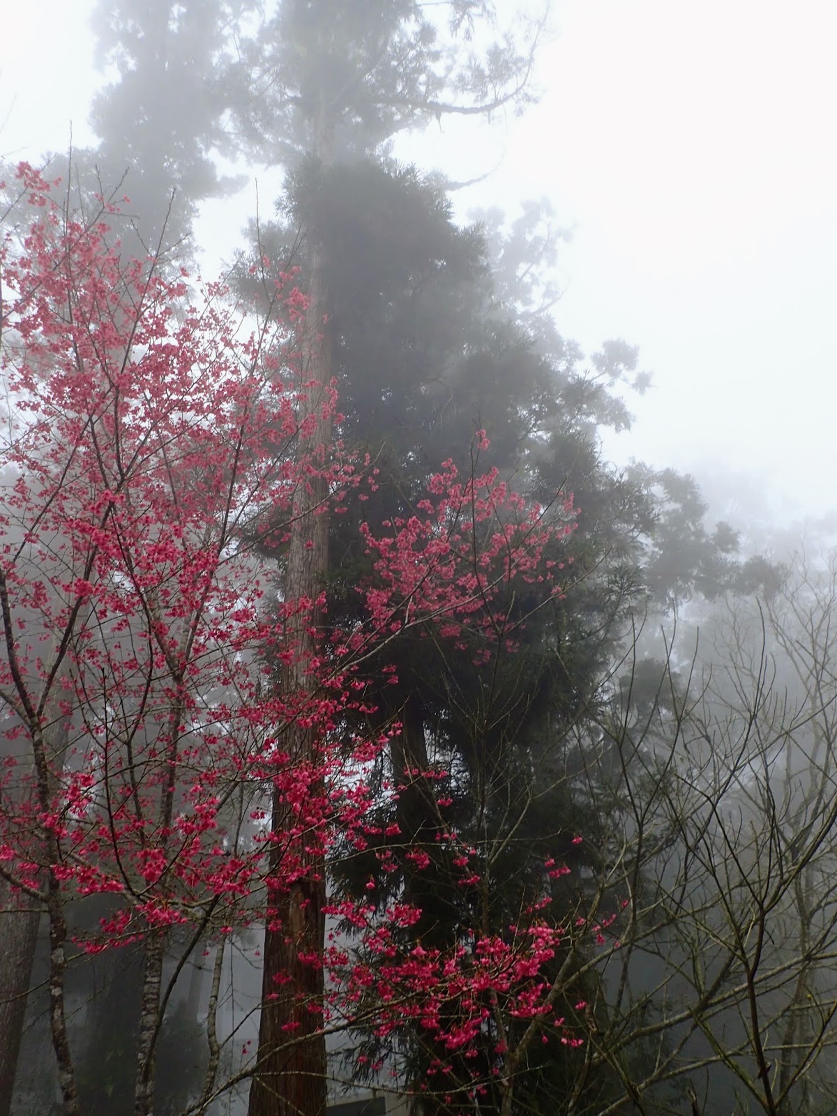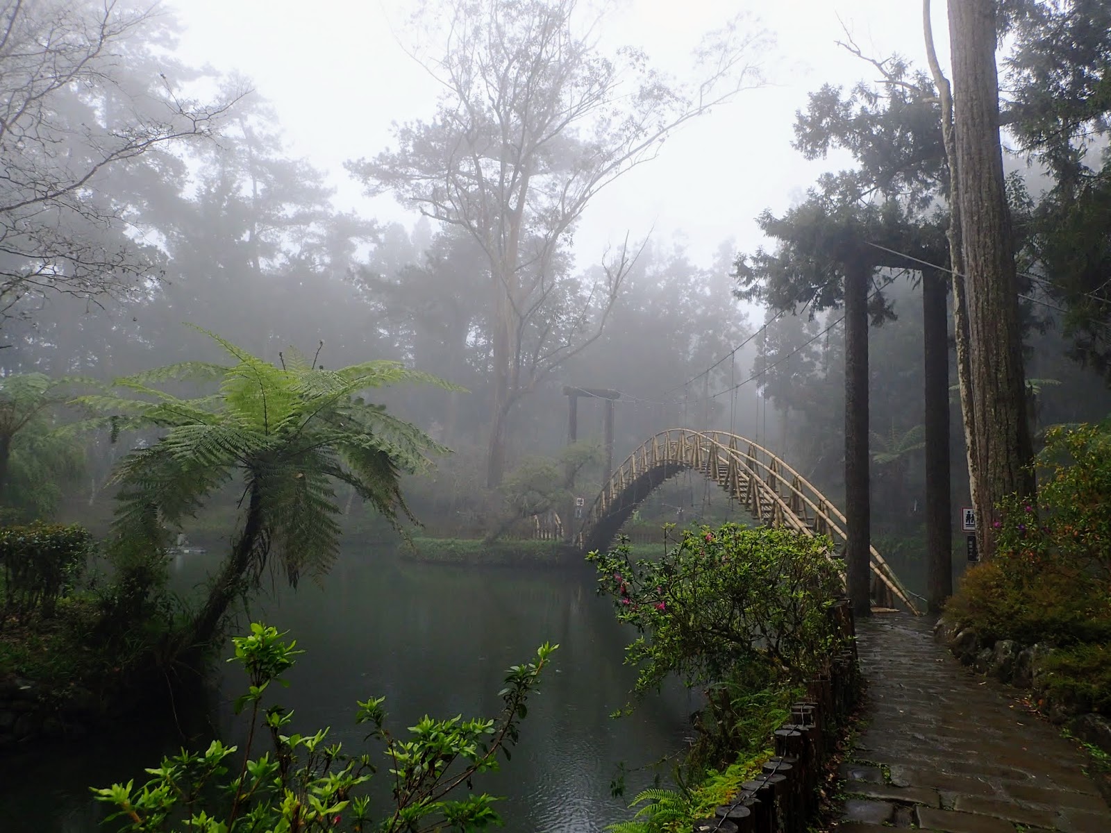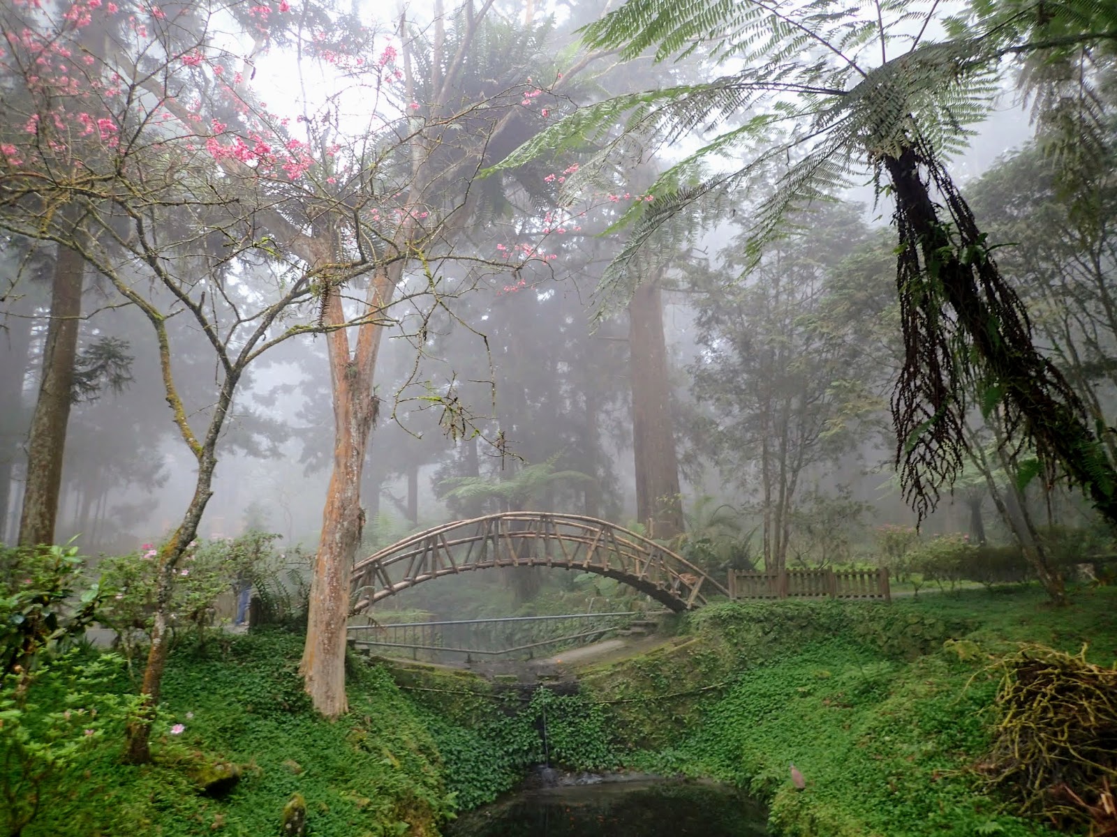 霧靄飄渺的景緻, 清新鮮活的空氣瀰漫著香氣, 恣意吸口氣, 滿滿的芬多精