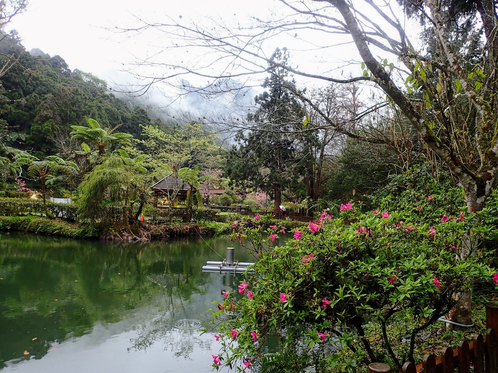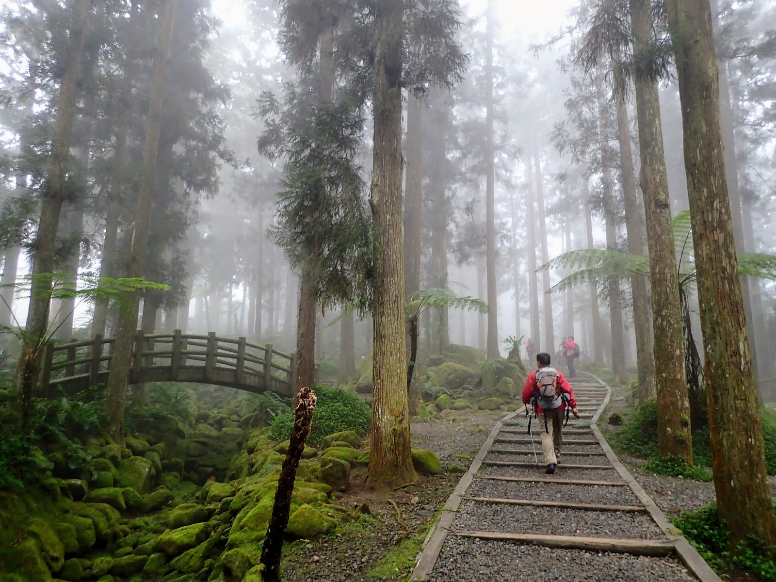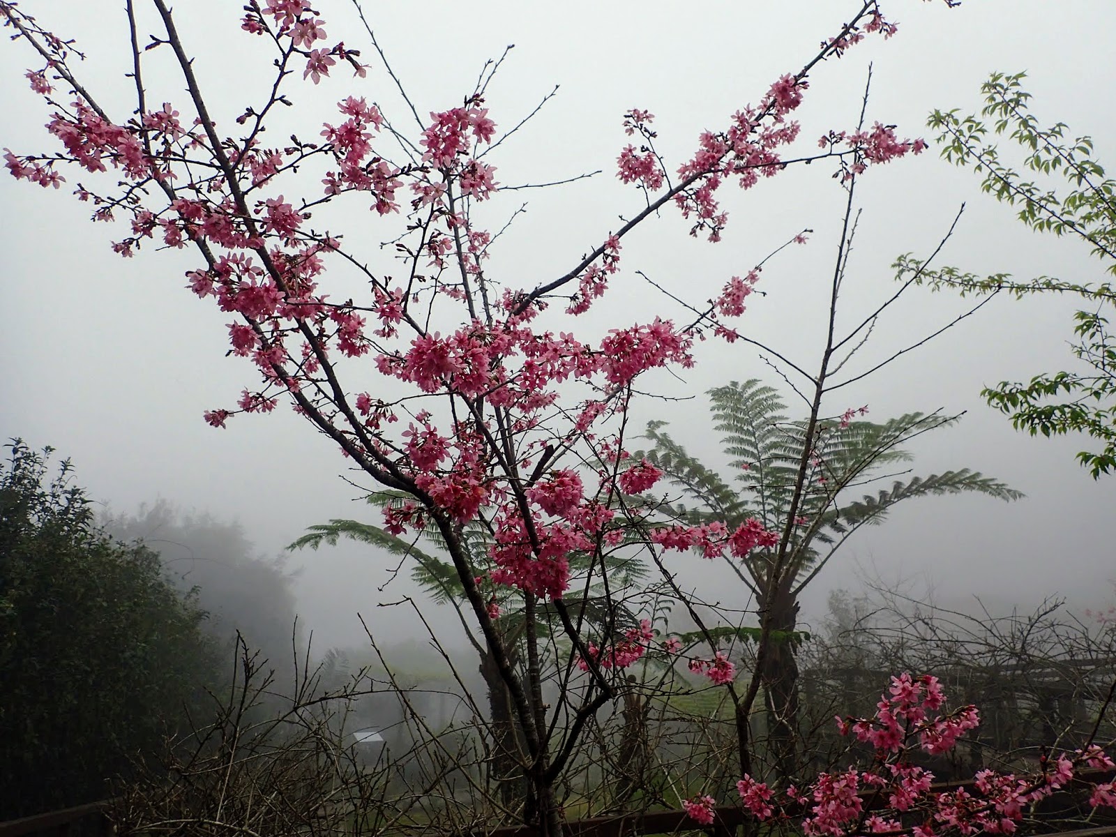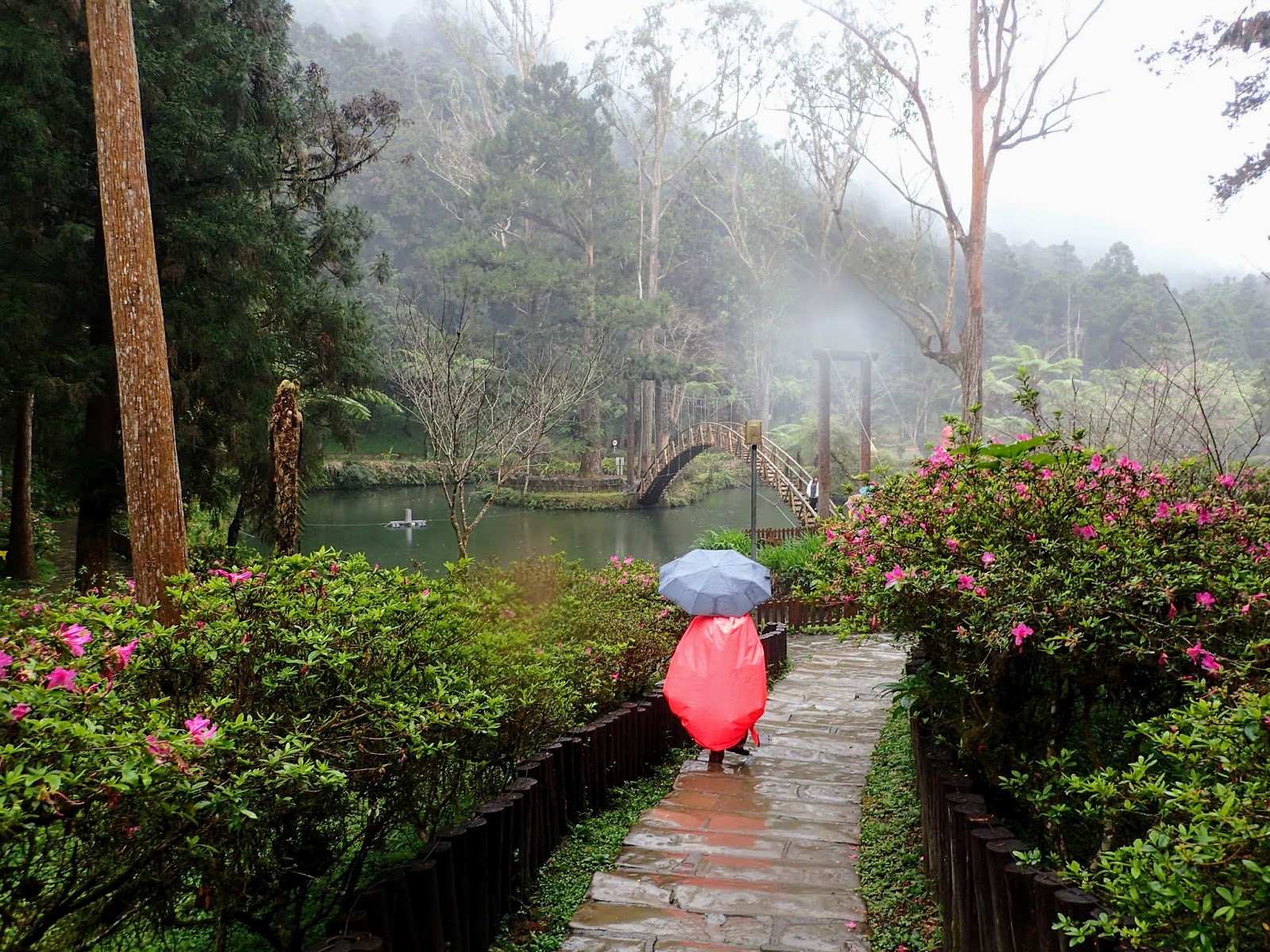 霧靄飄渺的景緻, 清新鮮活的空氣瀰漫著香氣, 恣意吸口氣, 滿滿的芬多精