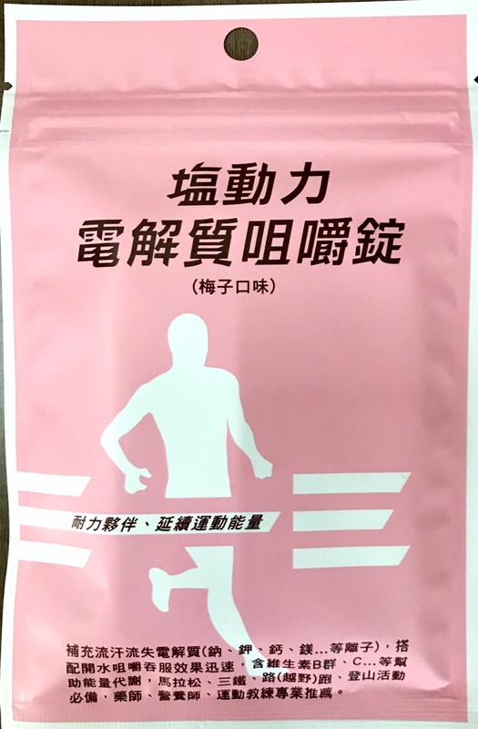 在高雄百岳買的有塩動力電解質咀嚼錠 (18錠180元),