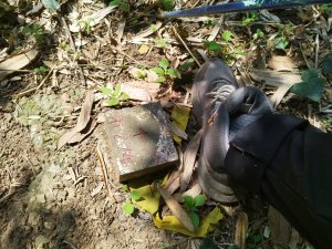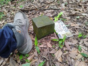 大屯西南稜~14(大空地往前走,在大石旁看到基石)