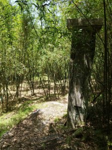 瀑布上的出土基石~6(從內雙溪香對萬善堂旁下來後會看到這個公墓界柱,在這裡馬上左轉進竹園)