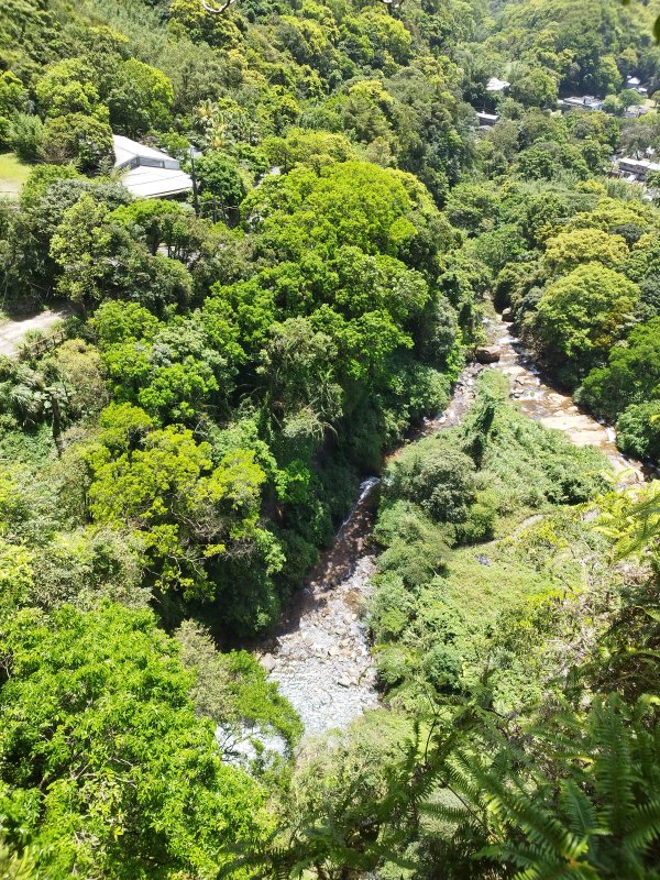 瀑布上的出土基石(從至善路三段336巷停車場出發。附近是天溪園生態教育中心)