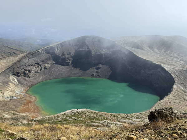 登頂後往御釜方向前進,此時霧氣逐漸散去,看到御釜時有被震撼到。9:28 御釜還在迷霧當中