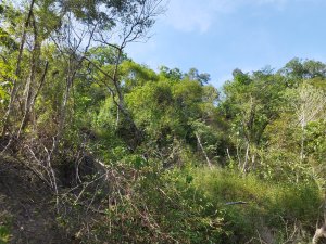 龜丹三山~13(擋土牆上方高點是龜丹山前峰,有內政部三等衛星控制點,但當下沒看到蹤影,可能是被雜草遮蓋所以也沒花時間再去找)