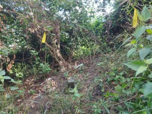 (六龜)塚子埔頂~4(從停車處旁下切邊坡,下切處竹子上綁有測量隊的黃路條)