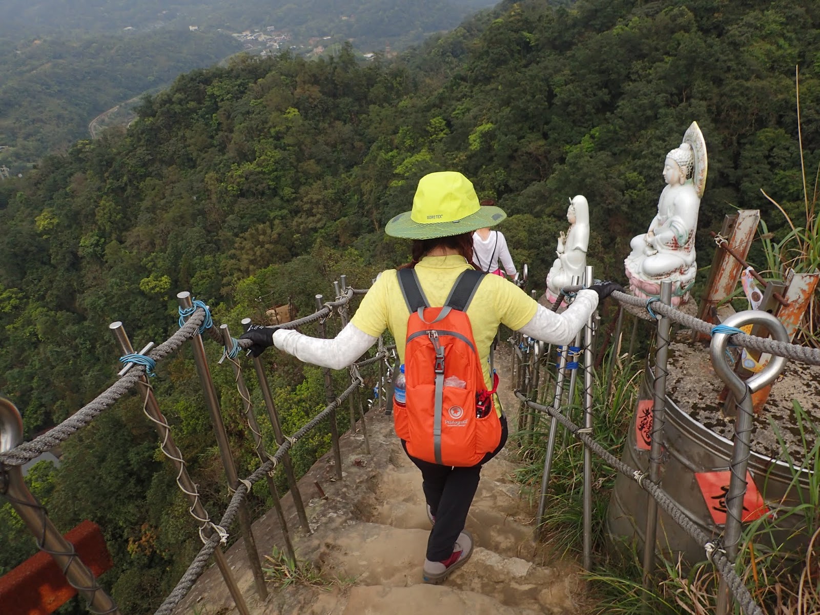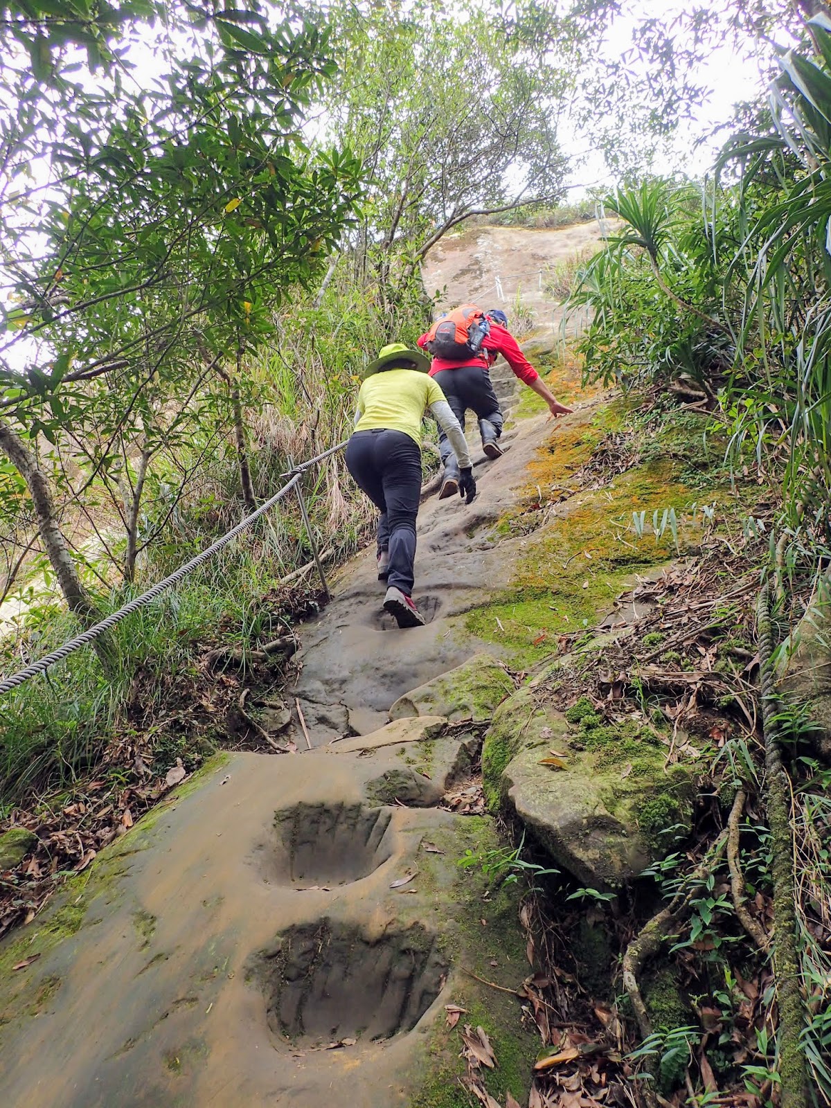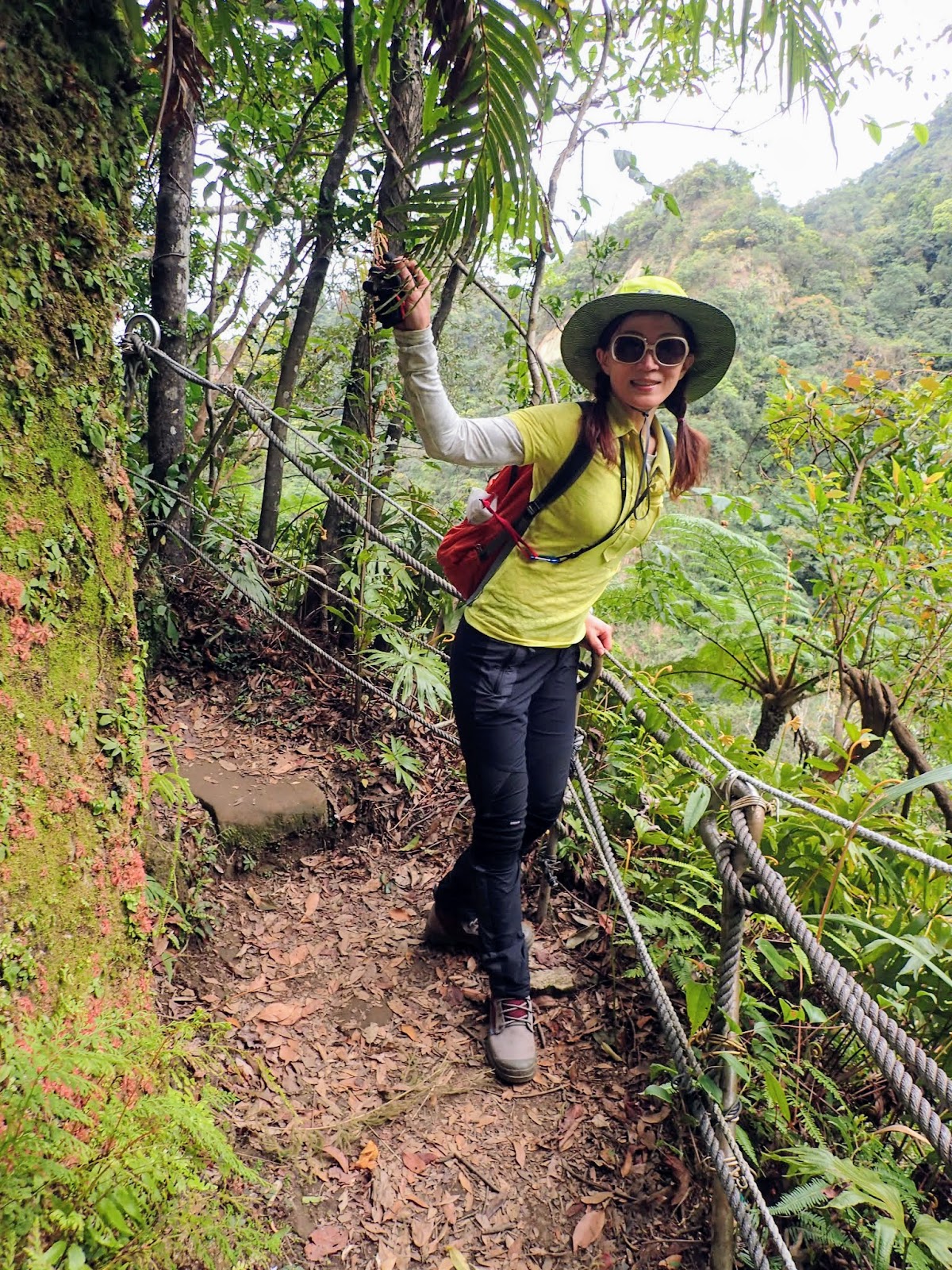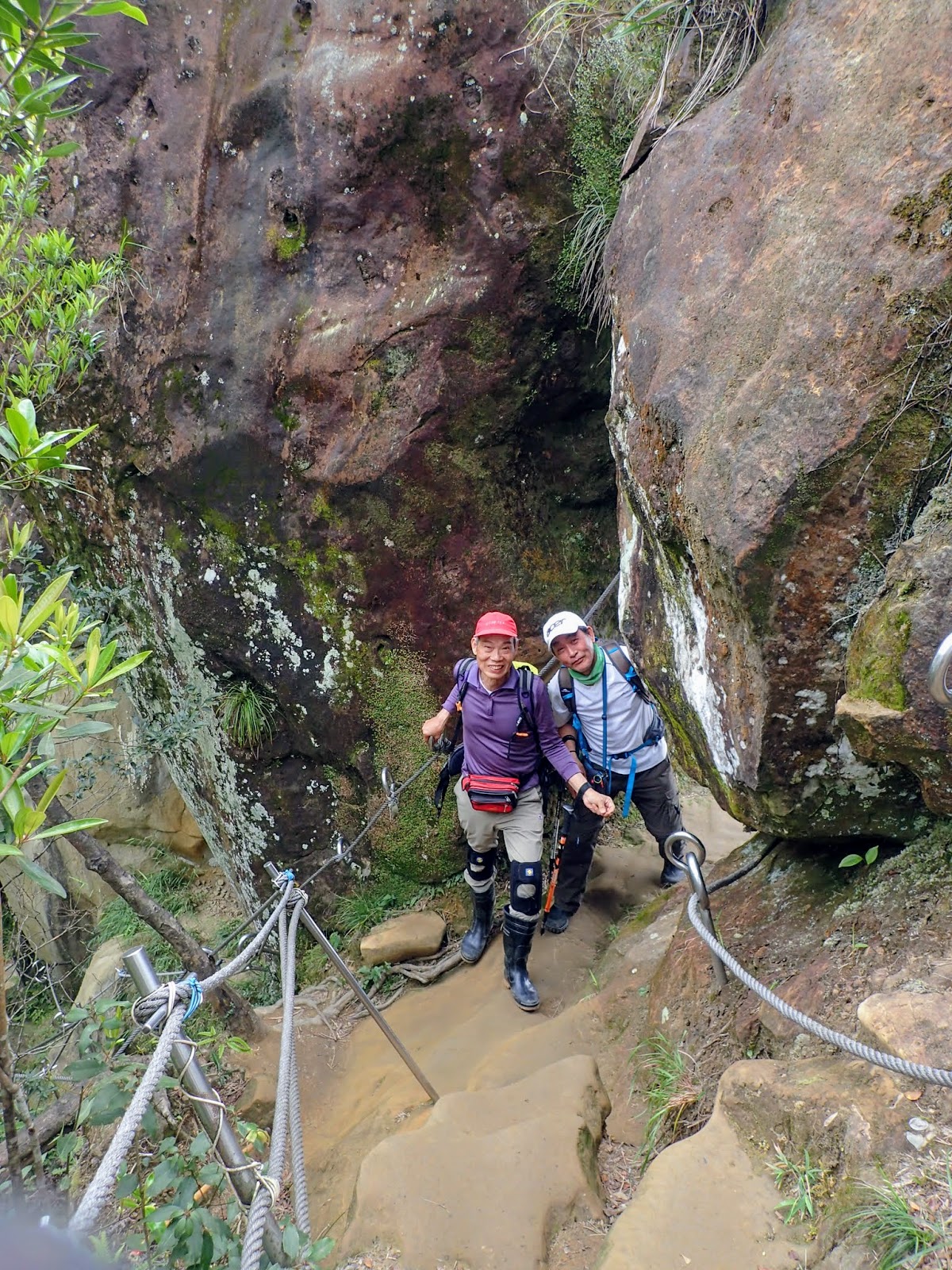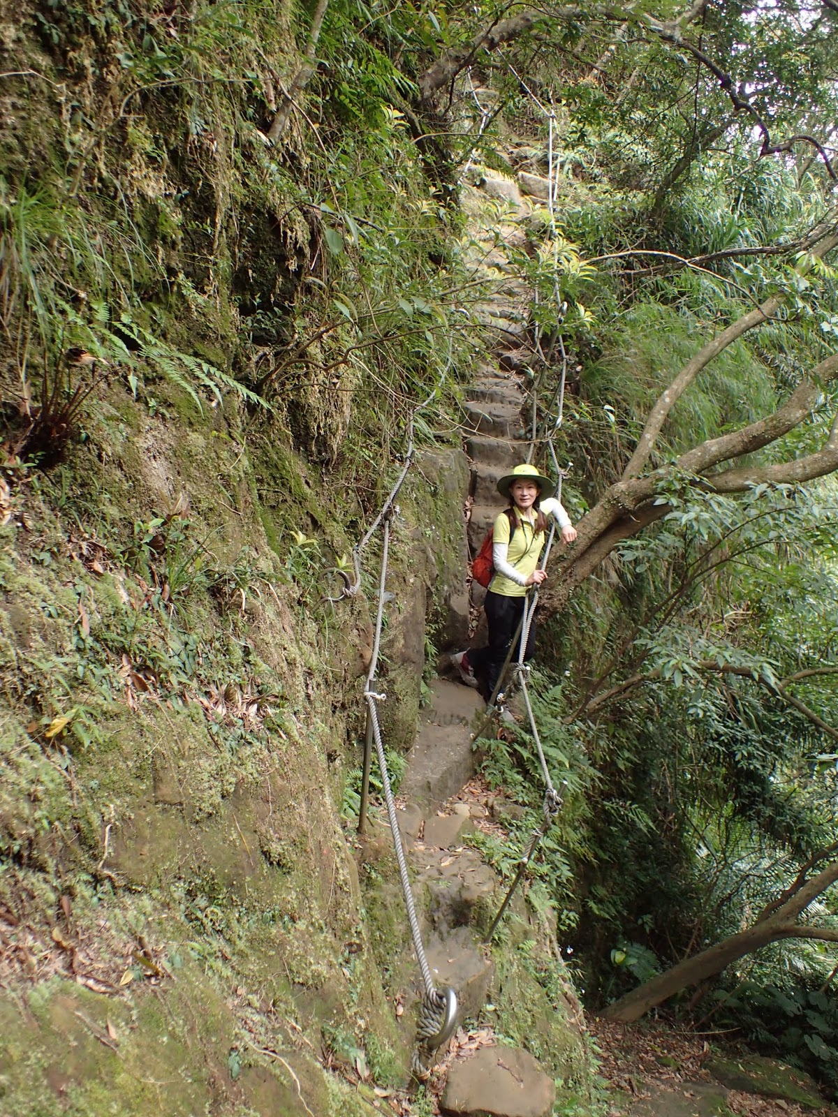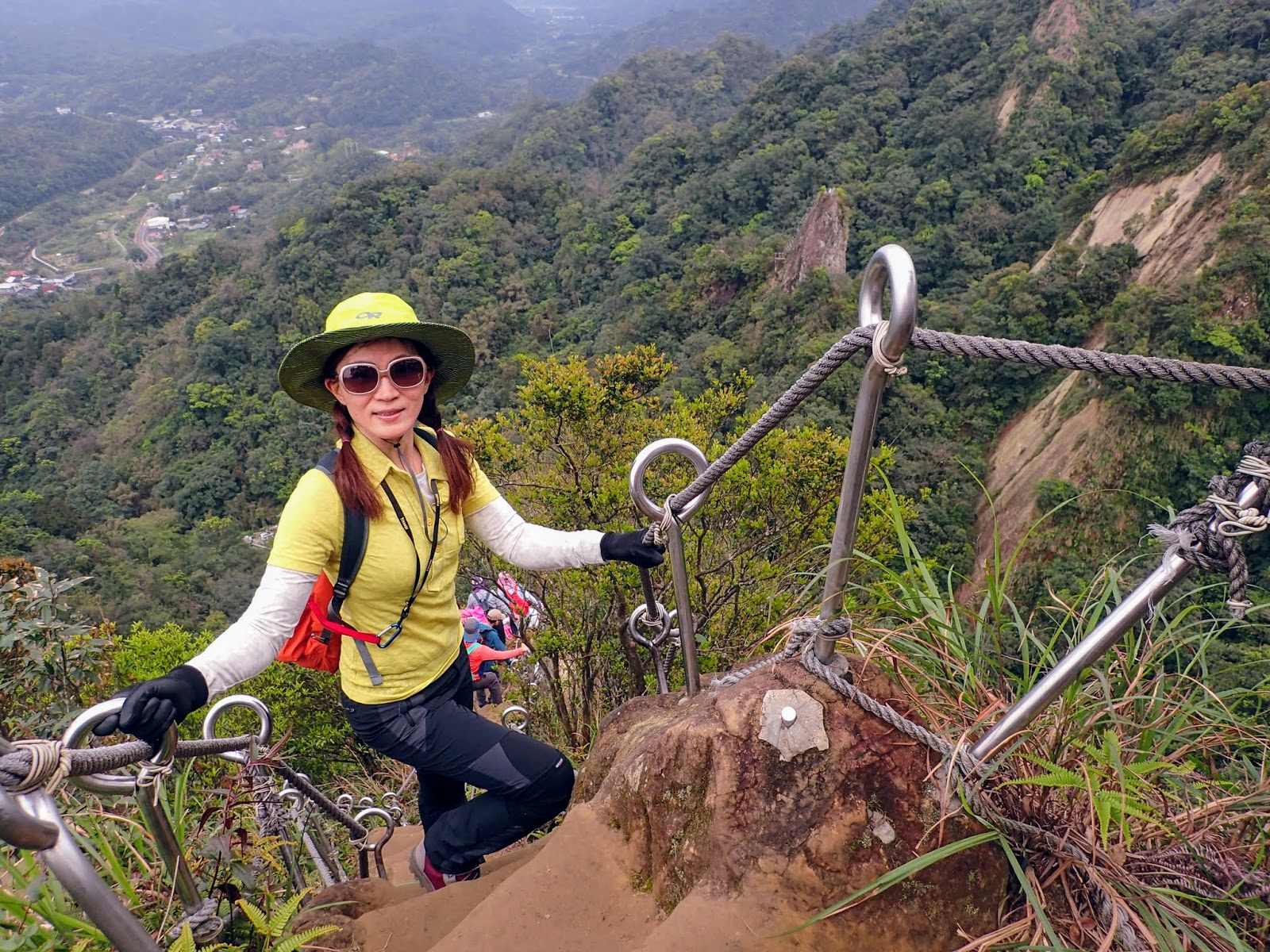 繼續往上攀爬陡峭的石壁, 好在踏點明顯還有鋼索可拉, 只要腳踏好手抓好, 沒問題的