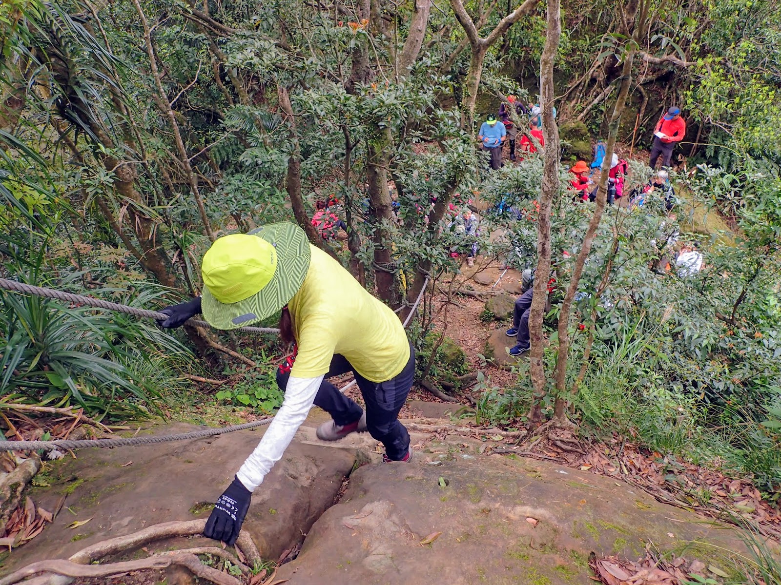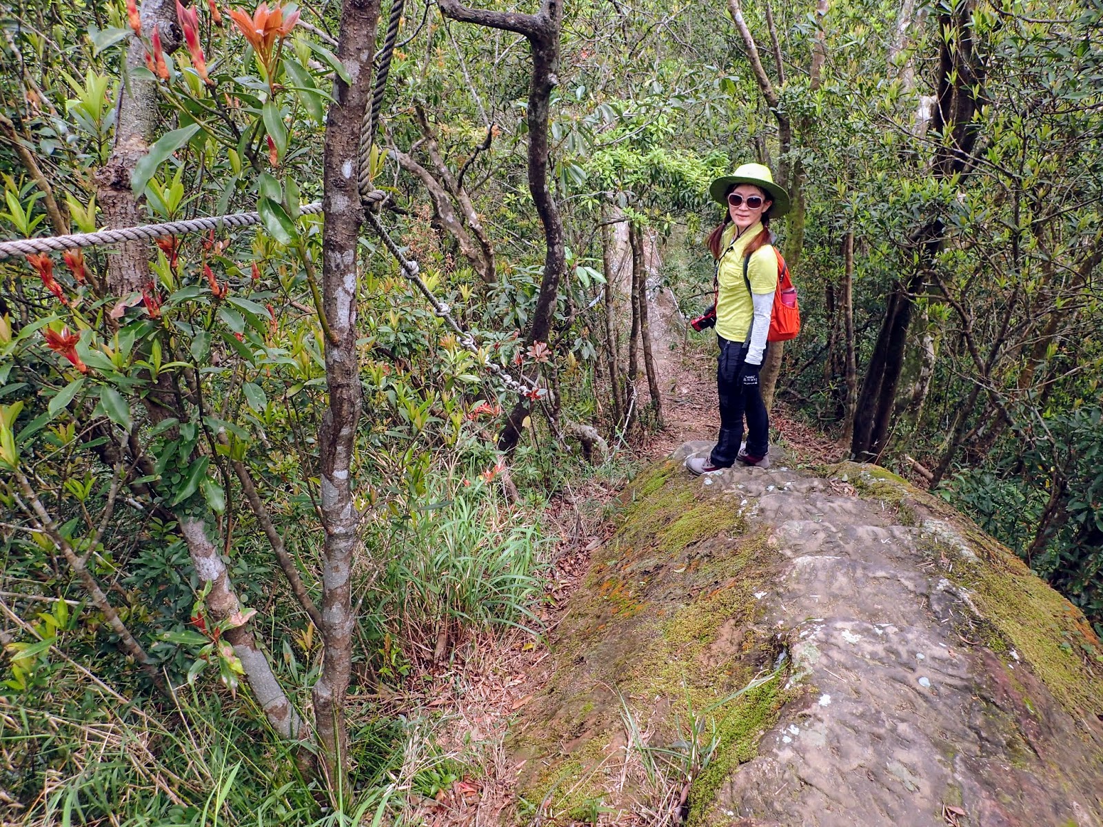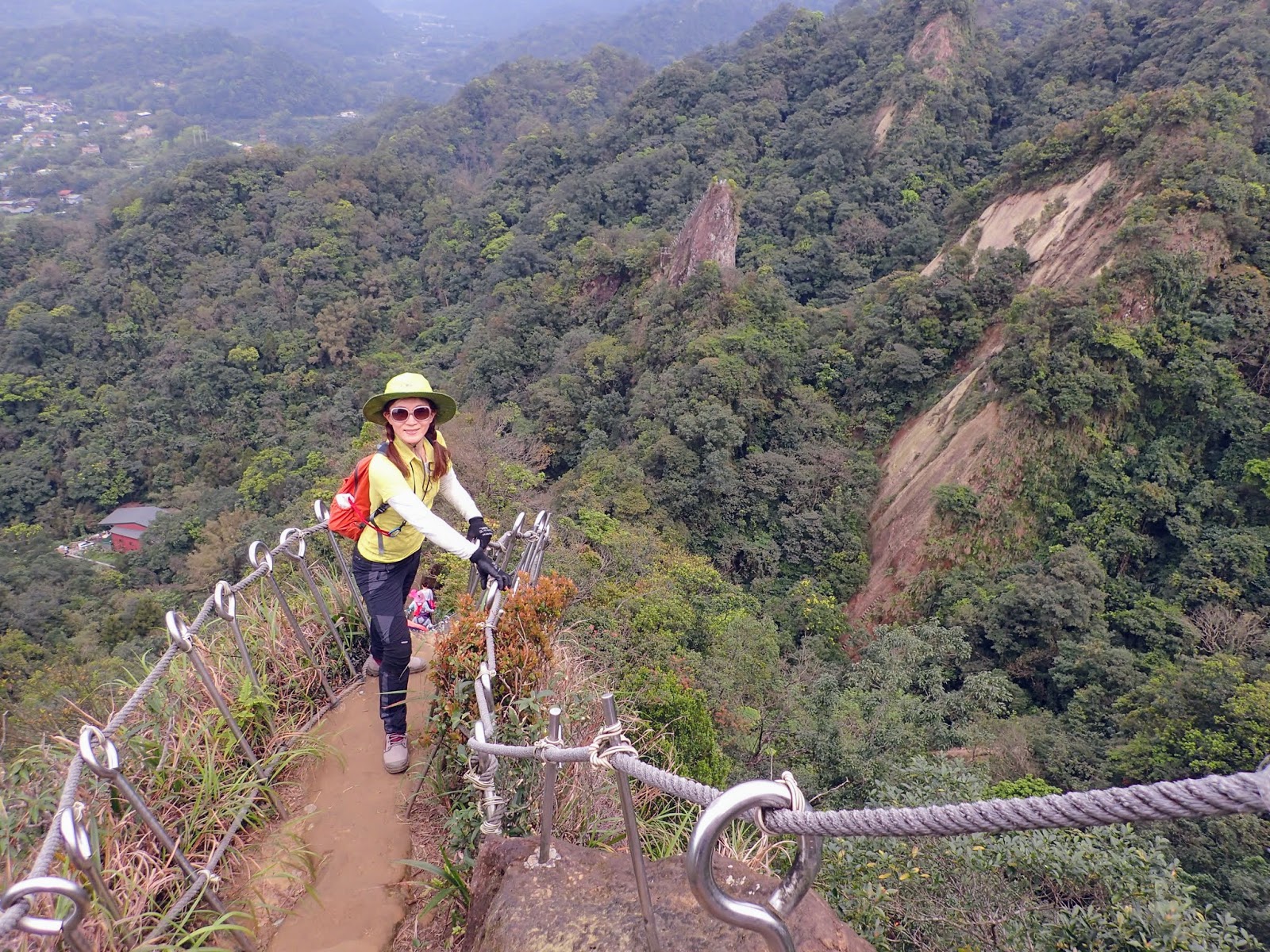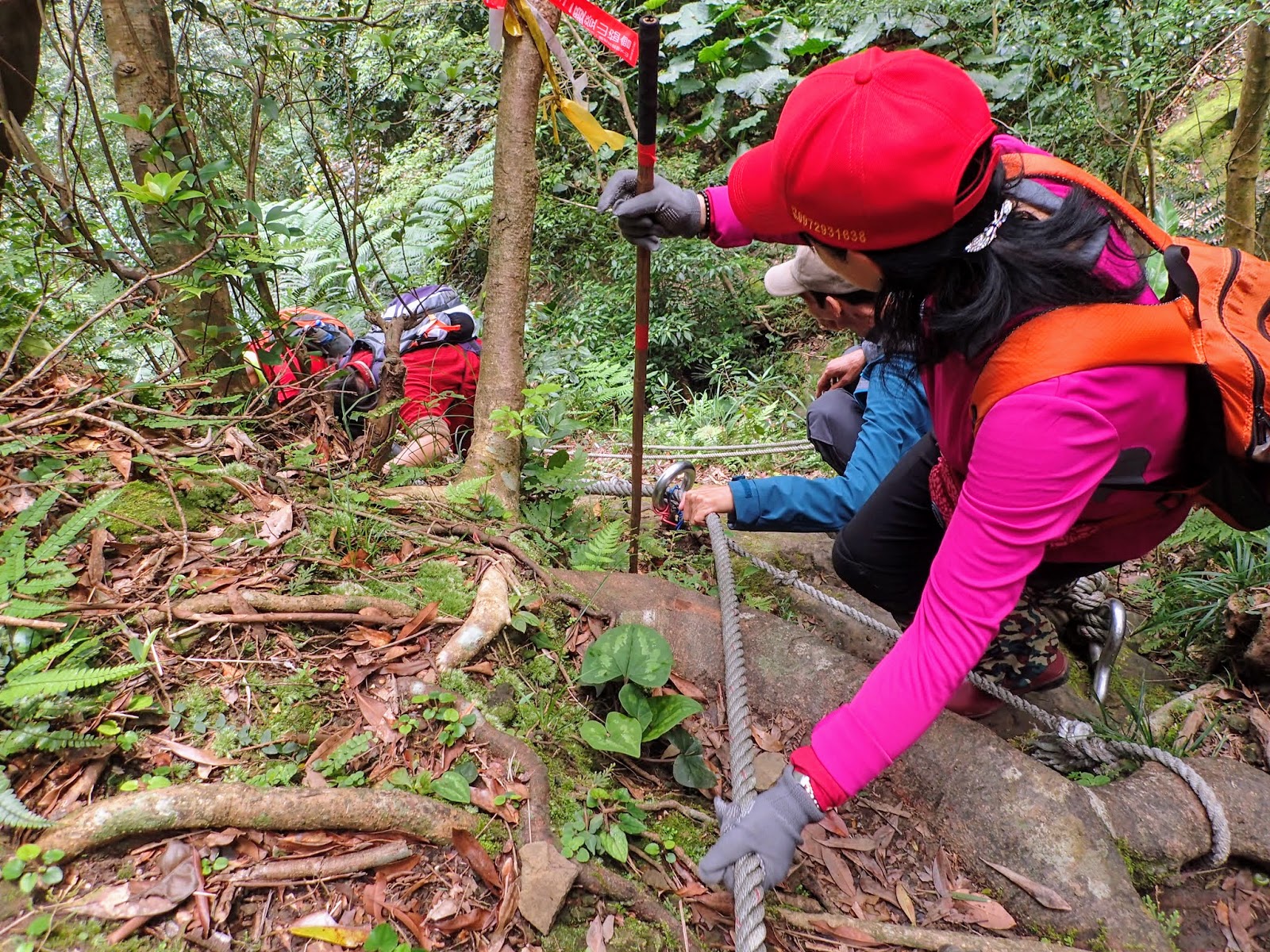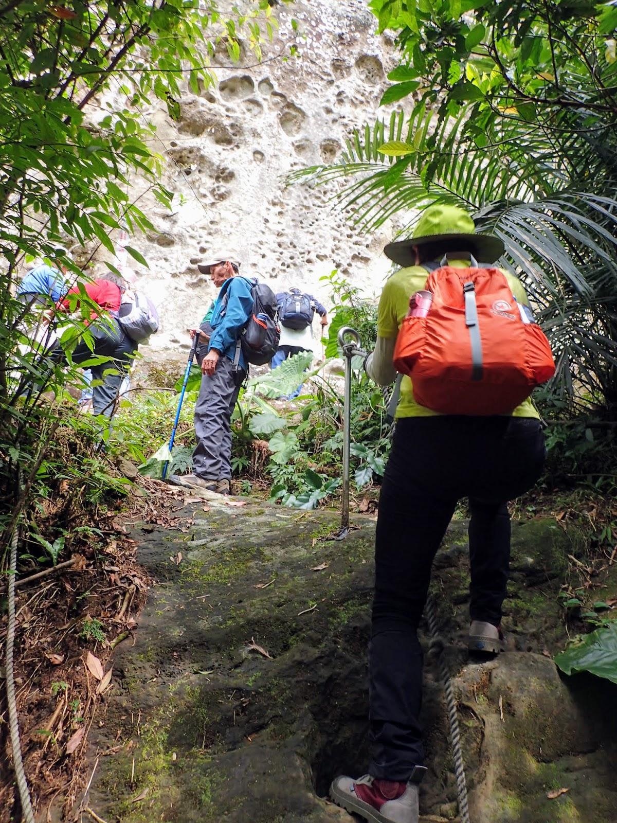 繼續往上攀爬陡峭的石壁, 好在踏點明顯還有鋼索可拉, 只要腳踏好手抓好, 沒問題的