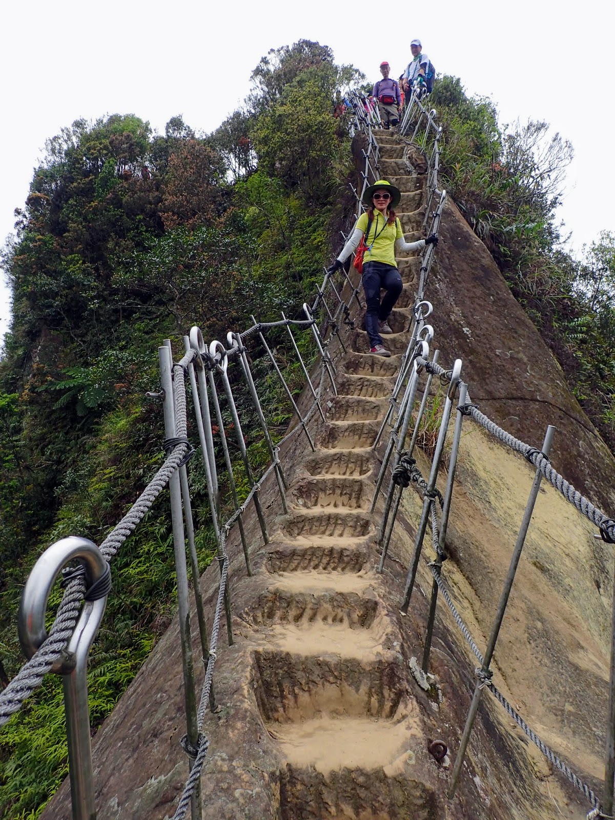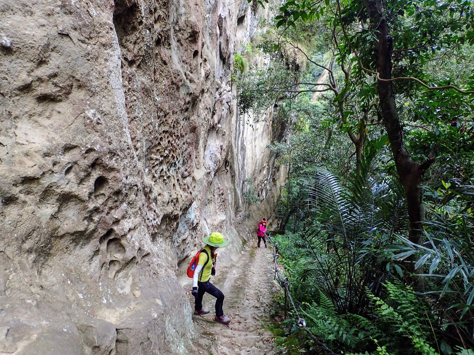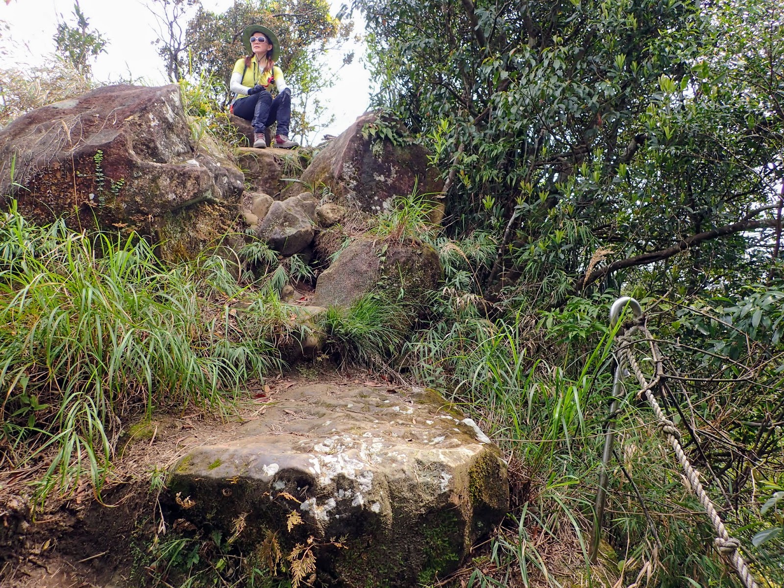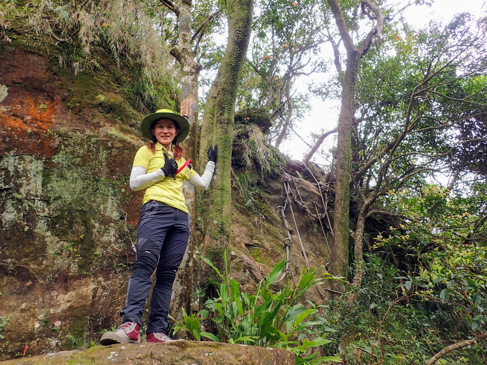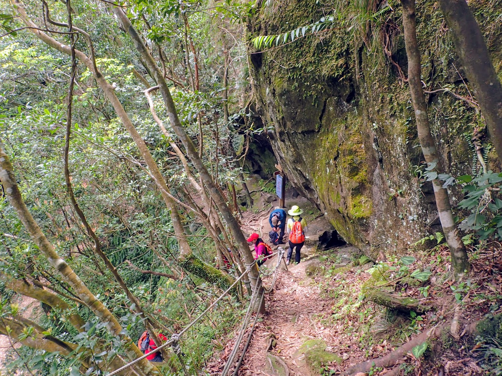 繼續往上攀爬陡峭的石壁, 好在踏點明顯還有鋼索可拉, 只要腳踏好手抓好, 沒問題的