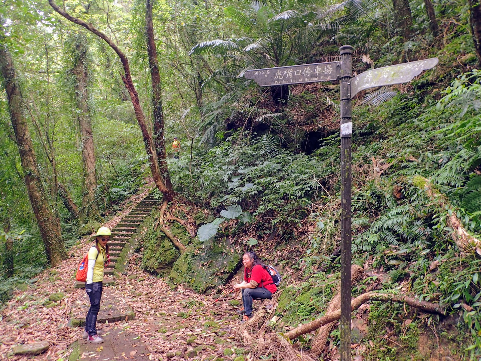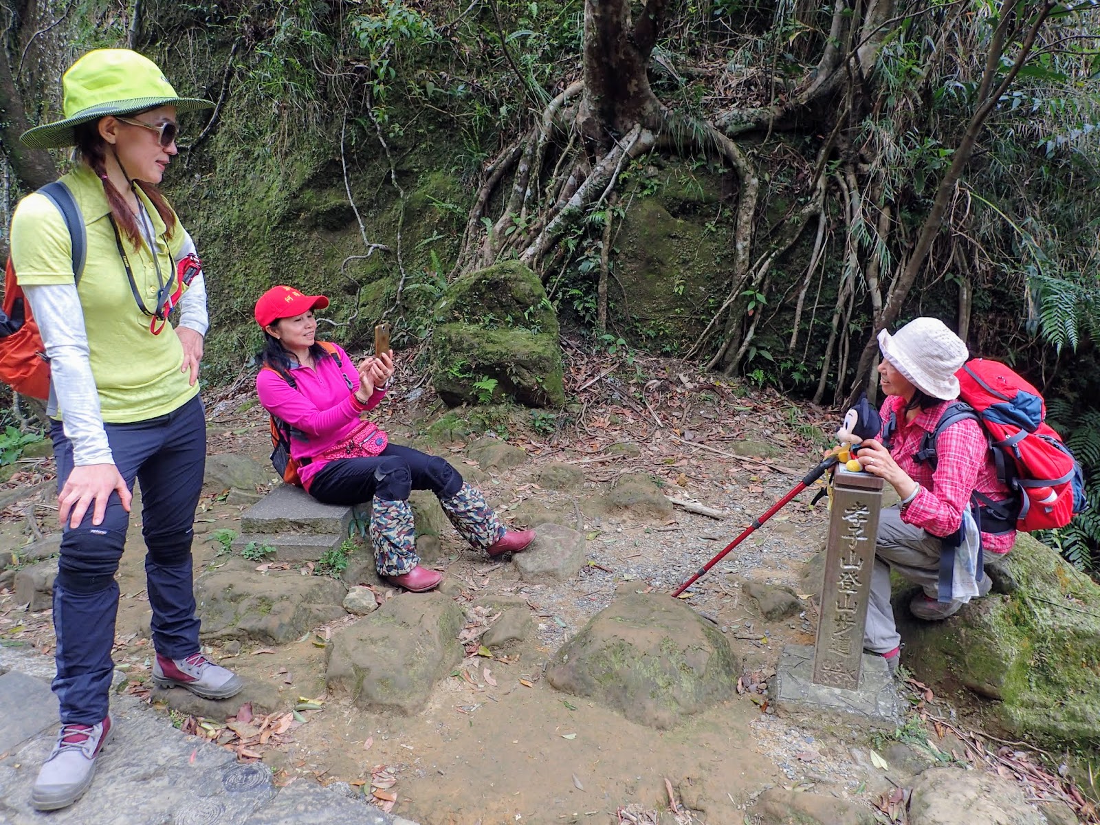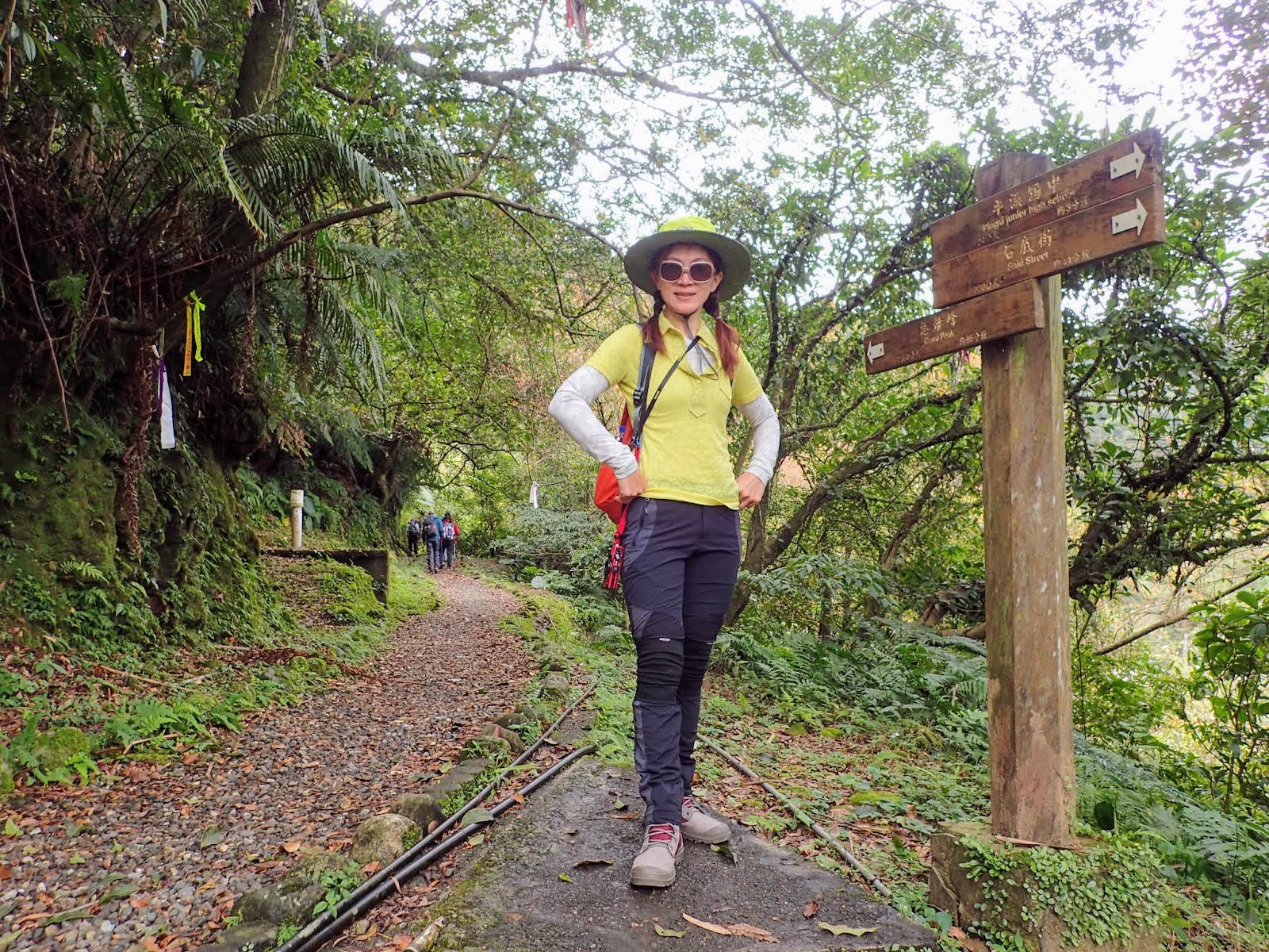 路旁的指標顯示往慈母峰及平溪國中及石底街, 繼續往慈母峰方向走, 麗華跟九段押隊陪著, 說時間很充裕慢慢走也沒關係