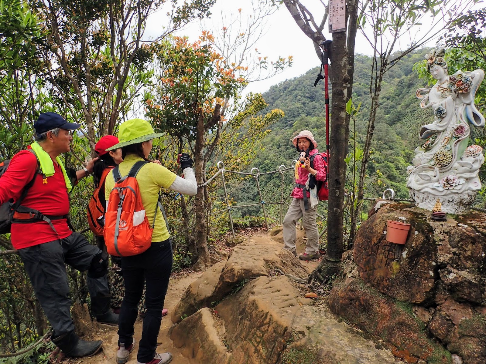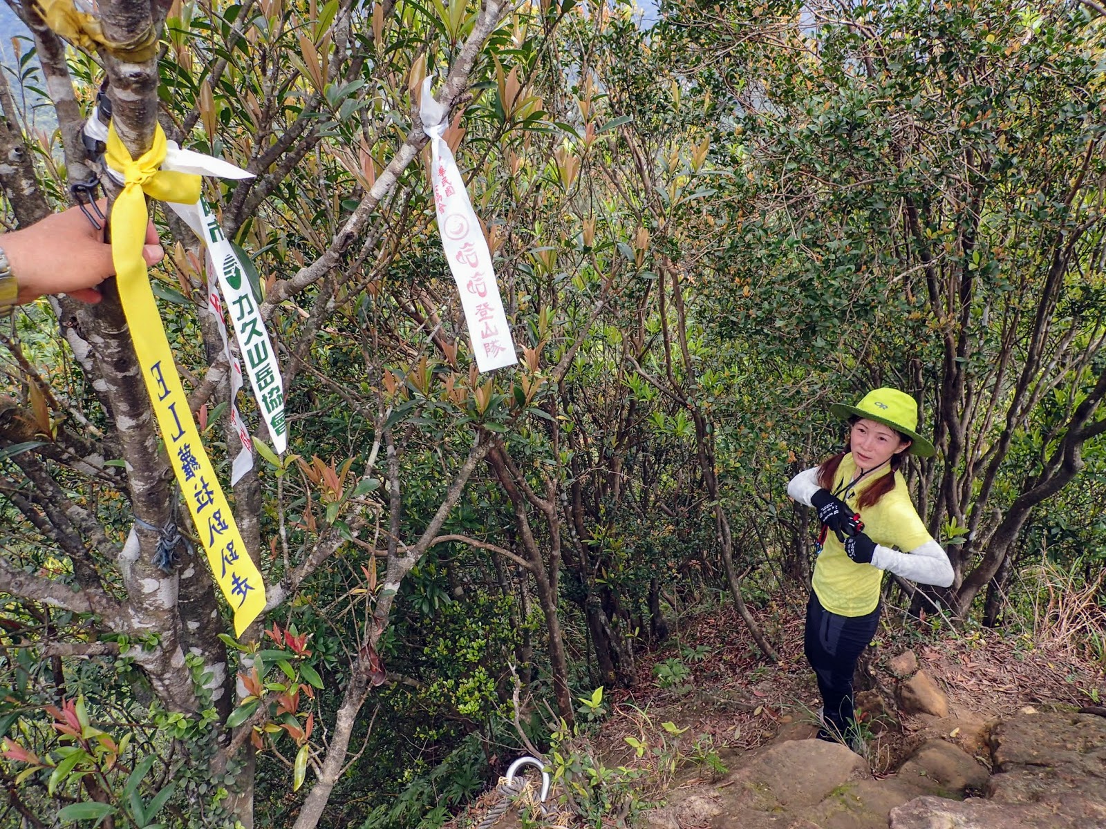 扶著鋼索走瘦稜上普陀山, 前頭領隊及健腳們已準備要下來了