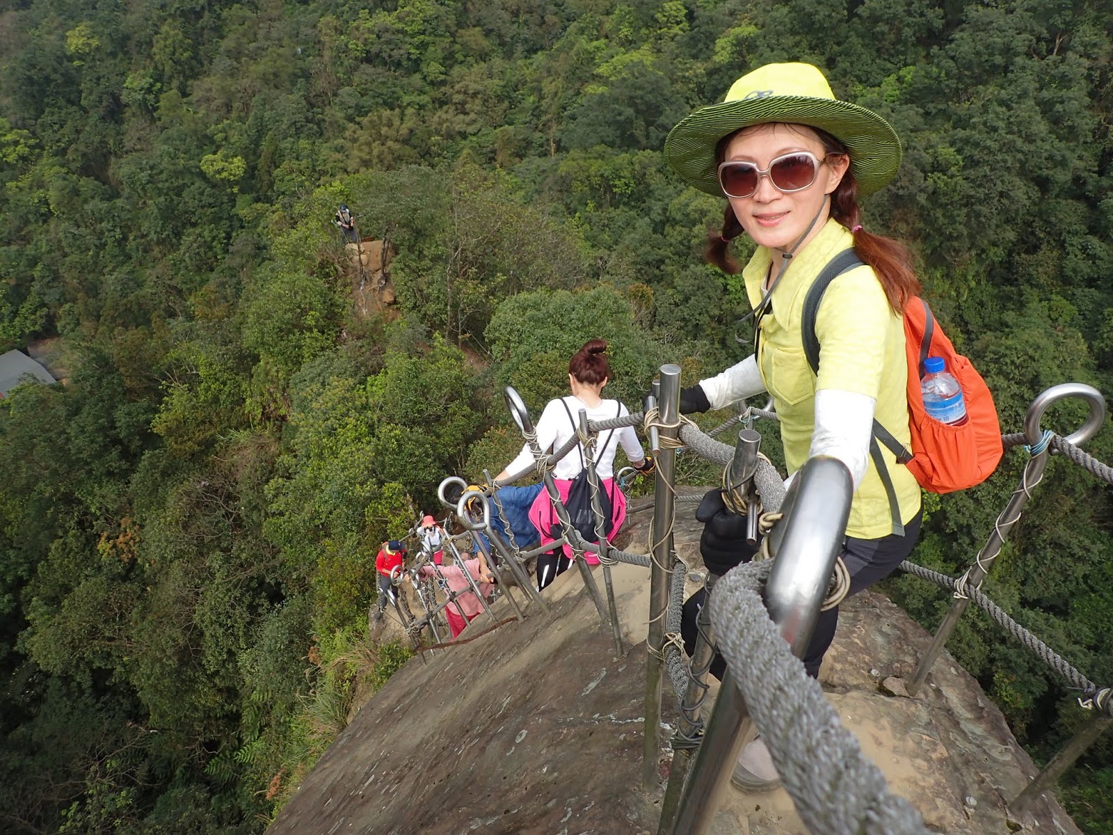 呵呵, 想起剛爬山時, 看到山友po出的照片後, 就嚇死了, 那時覺得好危險, 其實還好, 安全措施做得不錯, 喜歡刺激的有機會一定要試試