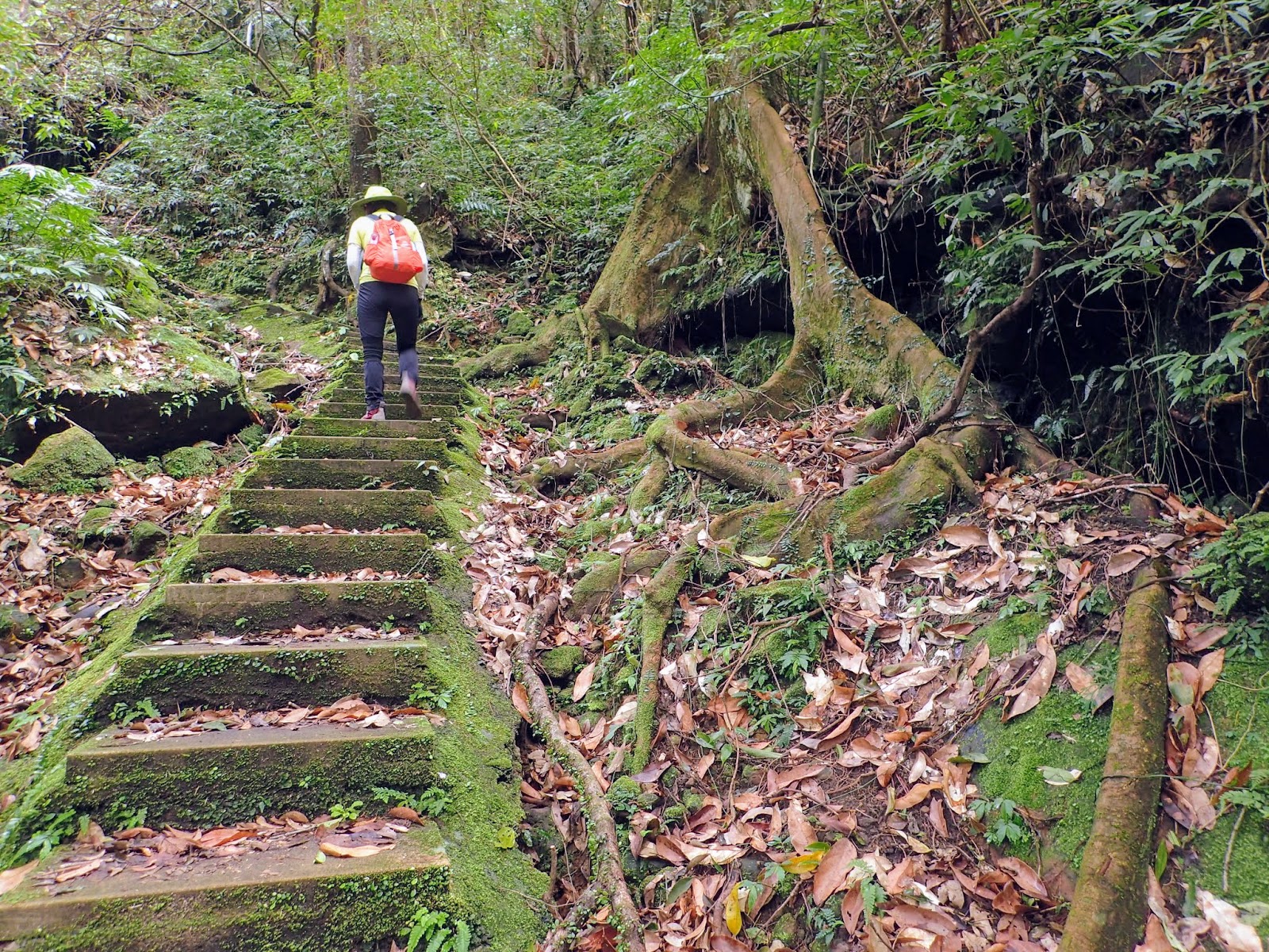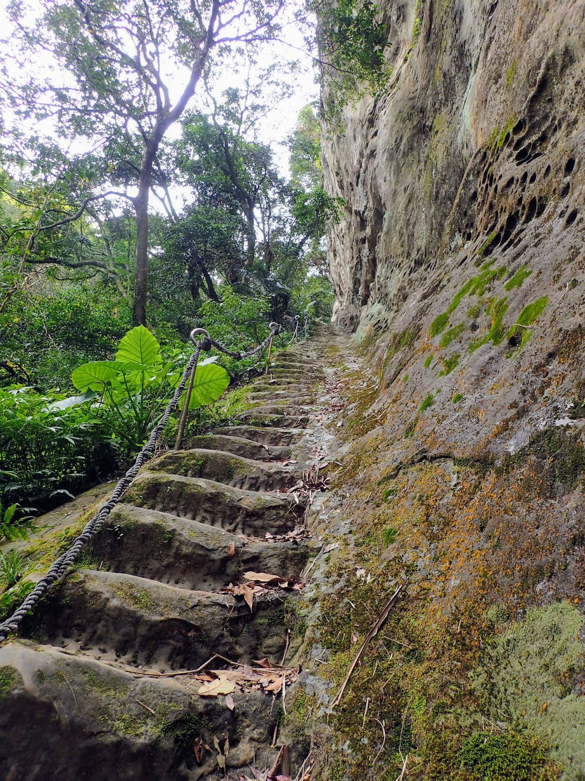 順著階梯往上走, 一樣是微微濕潤的青苔石階, 這次走起來沒有在怕了