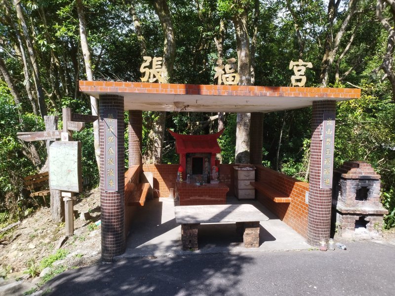 (平溪)芊蓁坑(紫東產業道路(北43鄉道)張福宮。基石在廟左的步道指標牌旁)