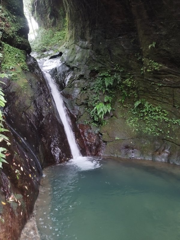 (平溪)大湖(平雙產業道路(北38鄉道)約2.4K處。往左下下切至溪谷,切入點樹幹上有綁陳年破布條)