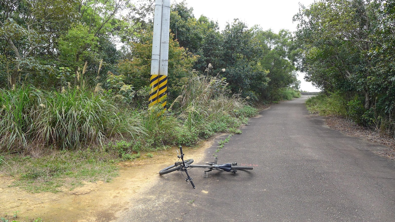 騎到古道時發現後輪輾到黃金,因為深胎紋根本清不乾淨,只好在扛的時候特別注意避免中到衣服上,好在需抬的距離不長,不然就有得歪腰了,下山還在找個哪地方可以清洗,熊熊發現路旁不就有一條現成的水圳道。