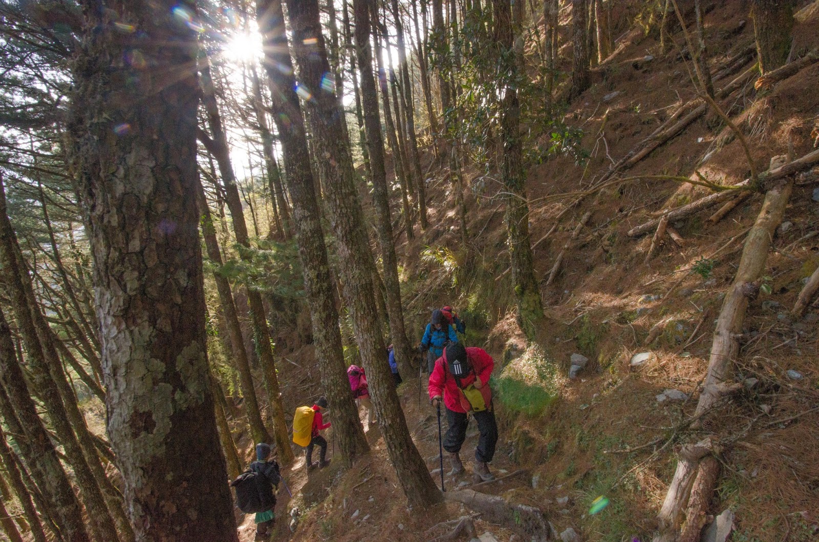 一夥人手腳並用的爬上向陽山