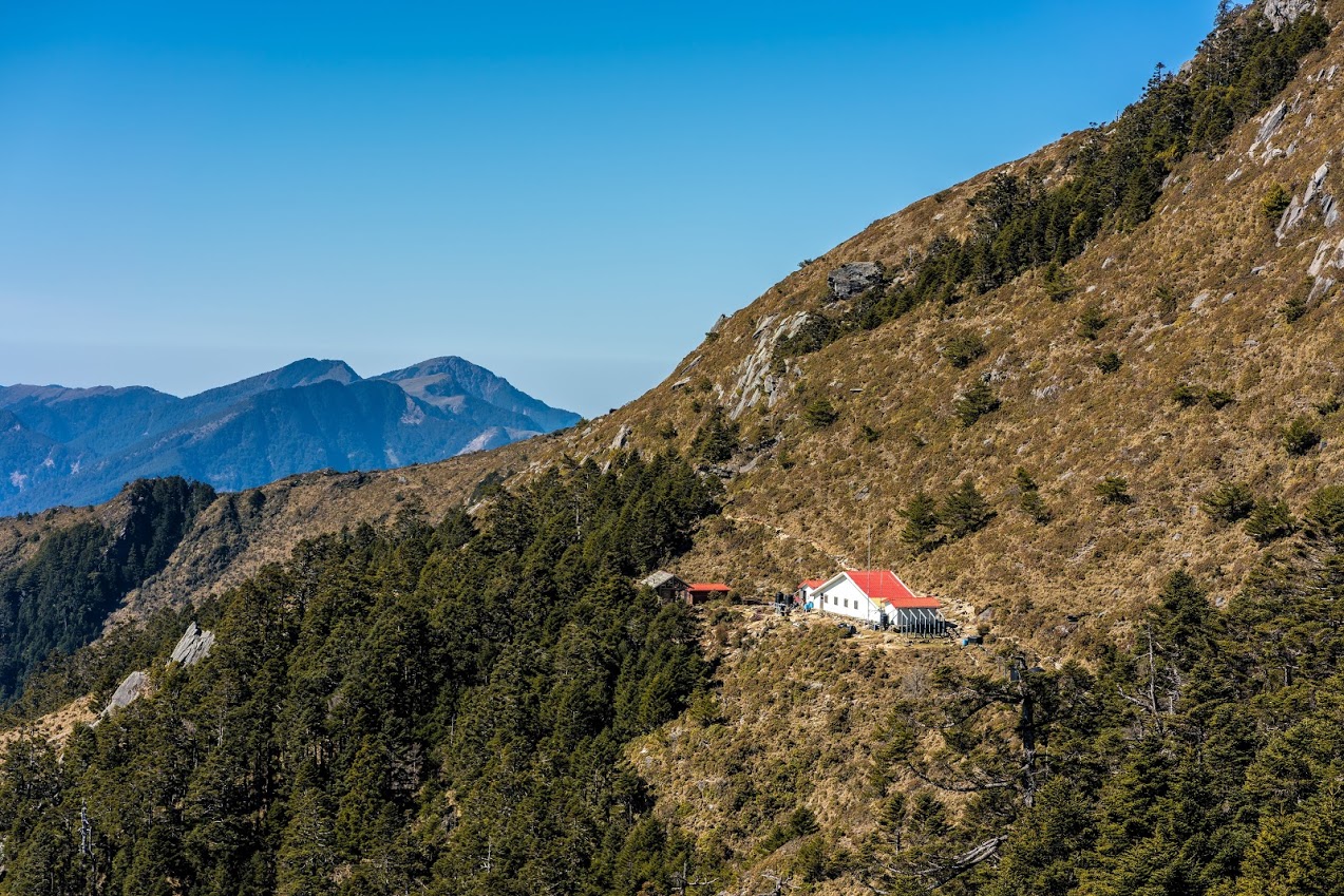 看見紅紅屋頂就是嘉明湖避難山屋