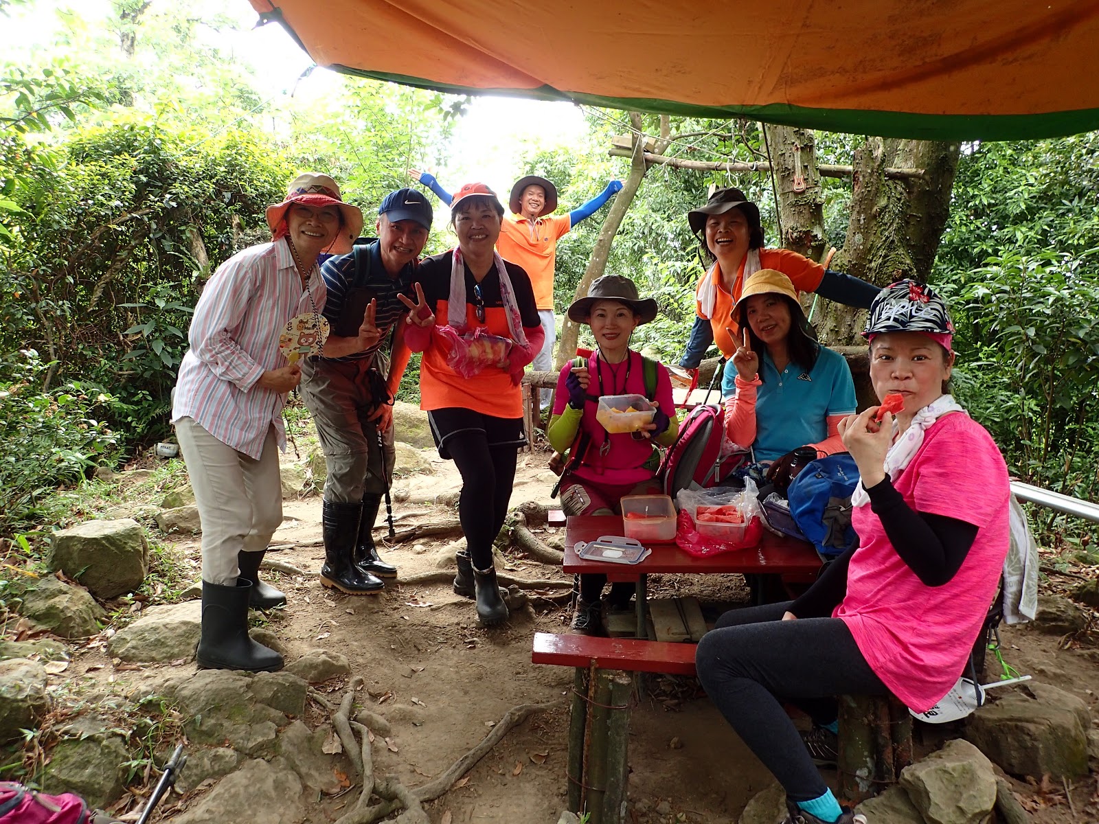 休息吃水果, 好甜的鳳梨及西瓜, 謝謝小龍夫婦辛苦了, 夏天爬山吃到多汁冰涼涼的水果, 一口接一口根本就停不下, 幸福到想飛上天了