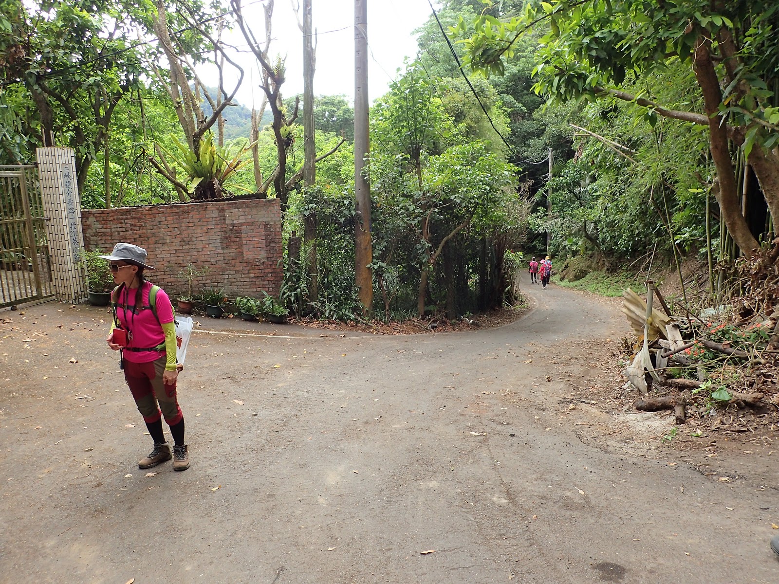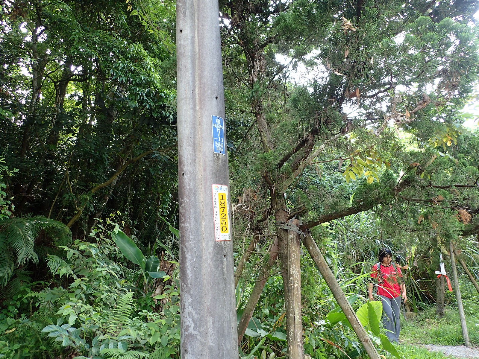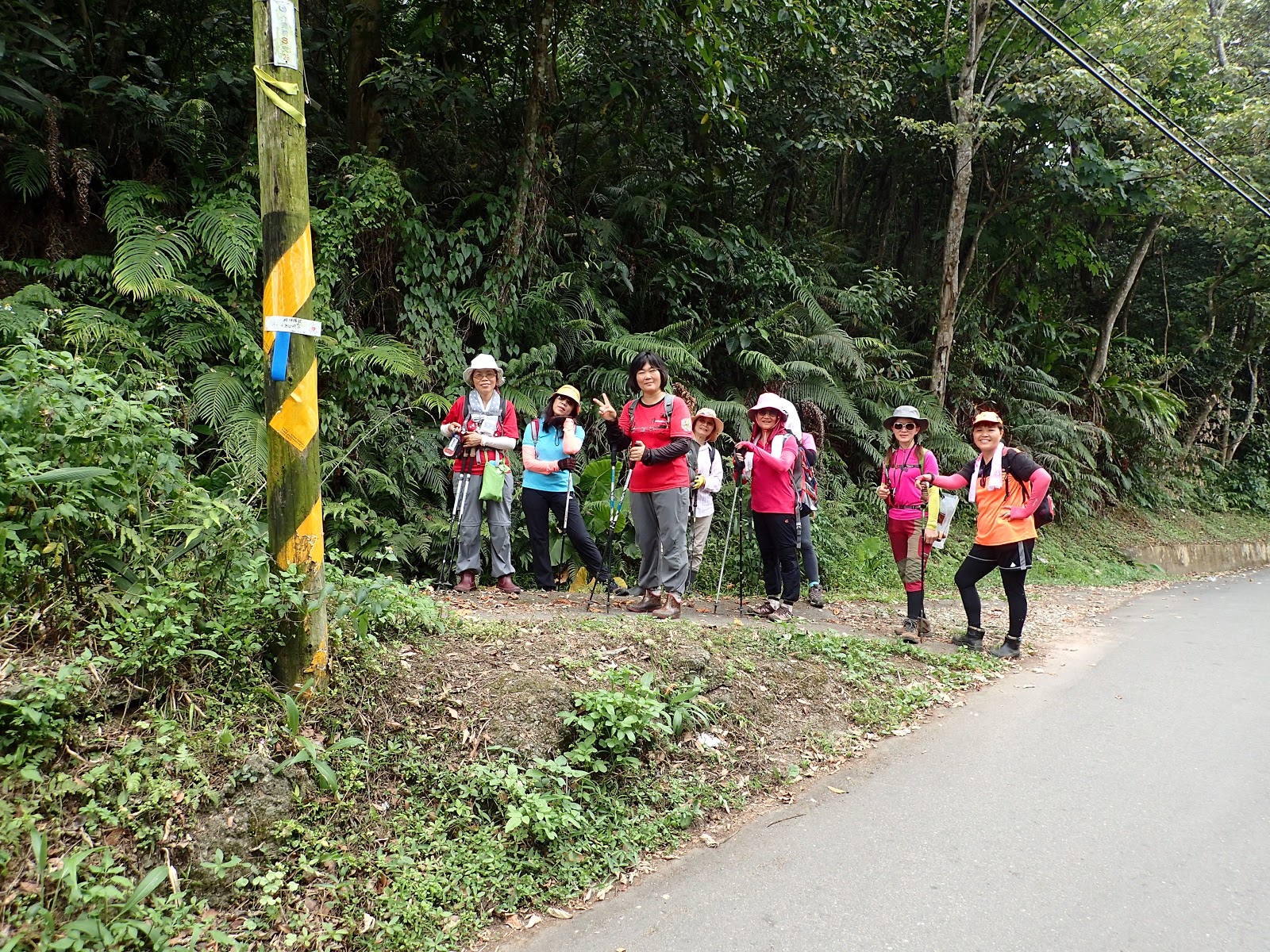 走到電線桿上貼有王公坑山路標, 停下等全員到齊