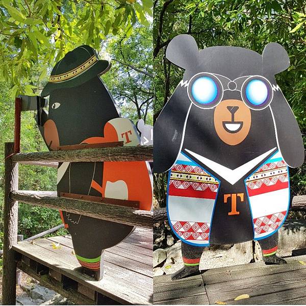 穿過吊橋會有可愛的捎來台灣黑熊看板迎接