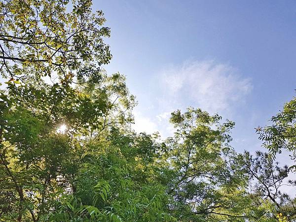 抬頭仰望這綠葉及藍天就有種療愈放鬆的感覺