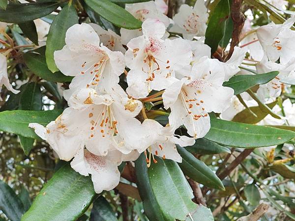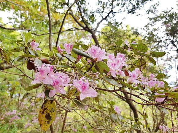 在立柱的旁邊開滿了野生杜鵑花開花了