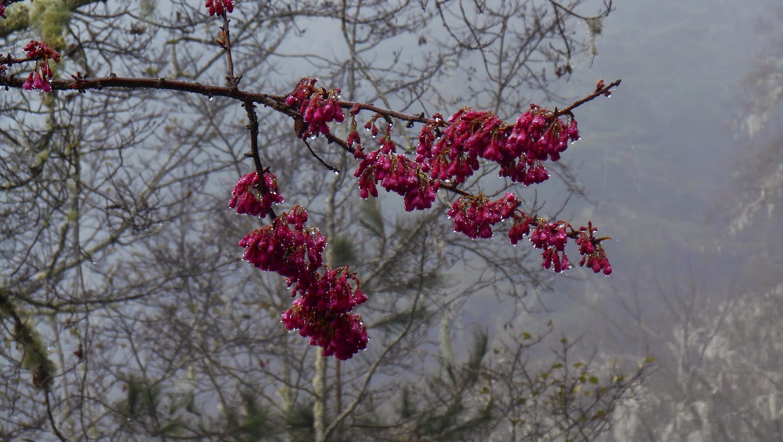 被雨水淋濕的山櫻花 |