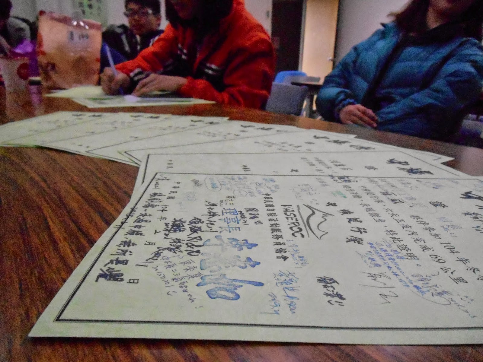 好像畢業典禮一樣,大家一拿到證書,就是在後面簽上大家的名字。