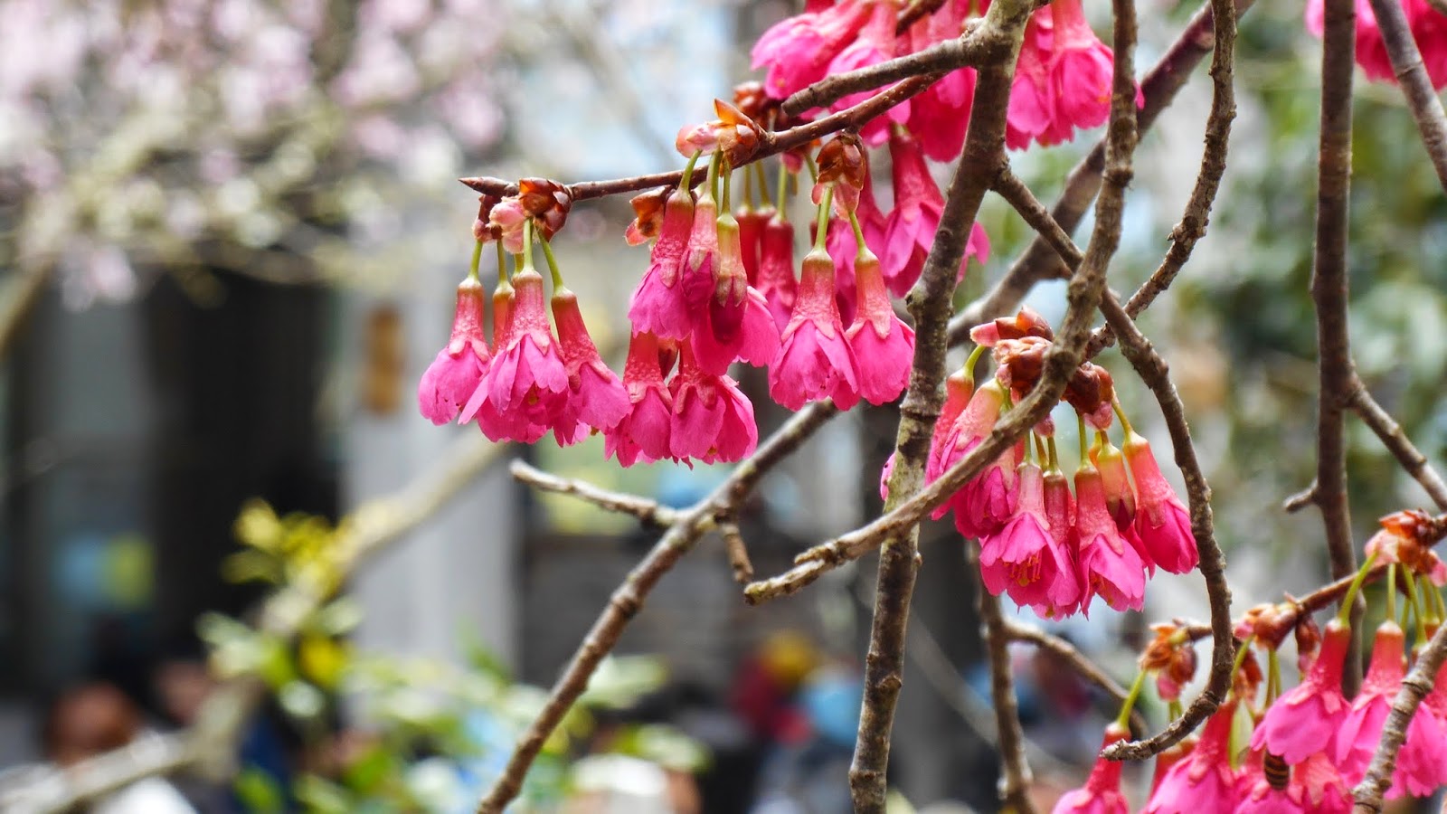 吃完早餐,準備出發囉!!! 一旁的日本櫻花開得正漂亮~ |