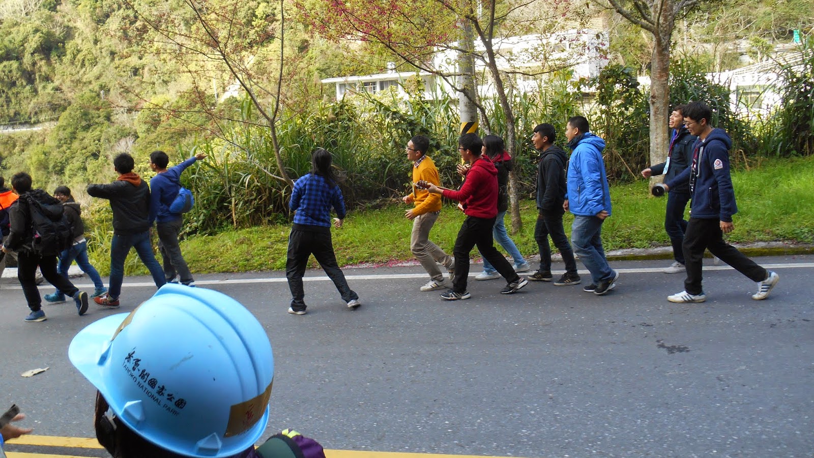 放下行李之後就是天祥的周邊導覽。 巧克力老師是師大附中的老師,博學多聞。 |