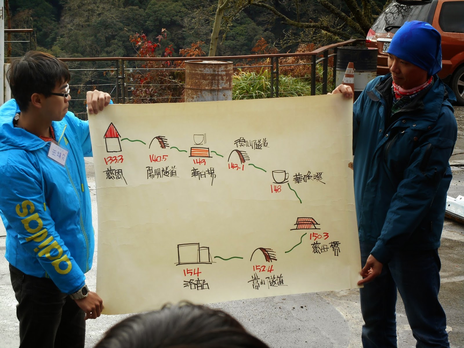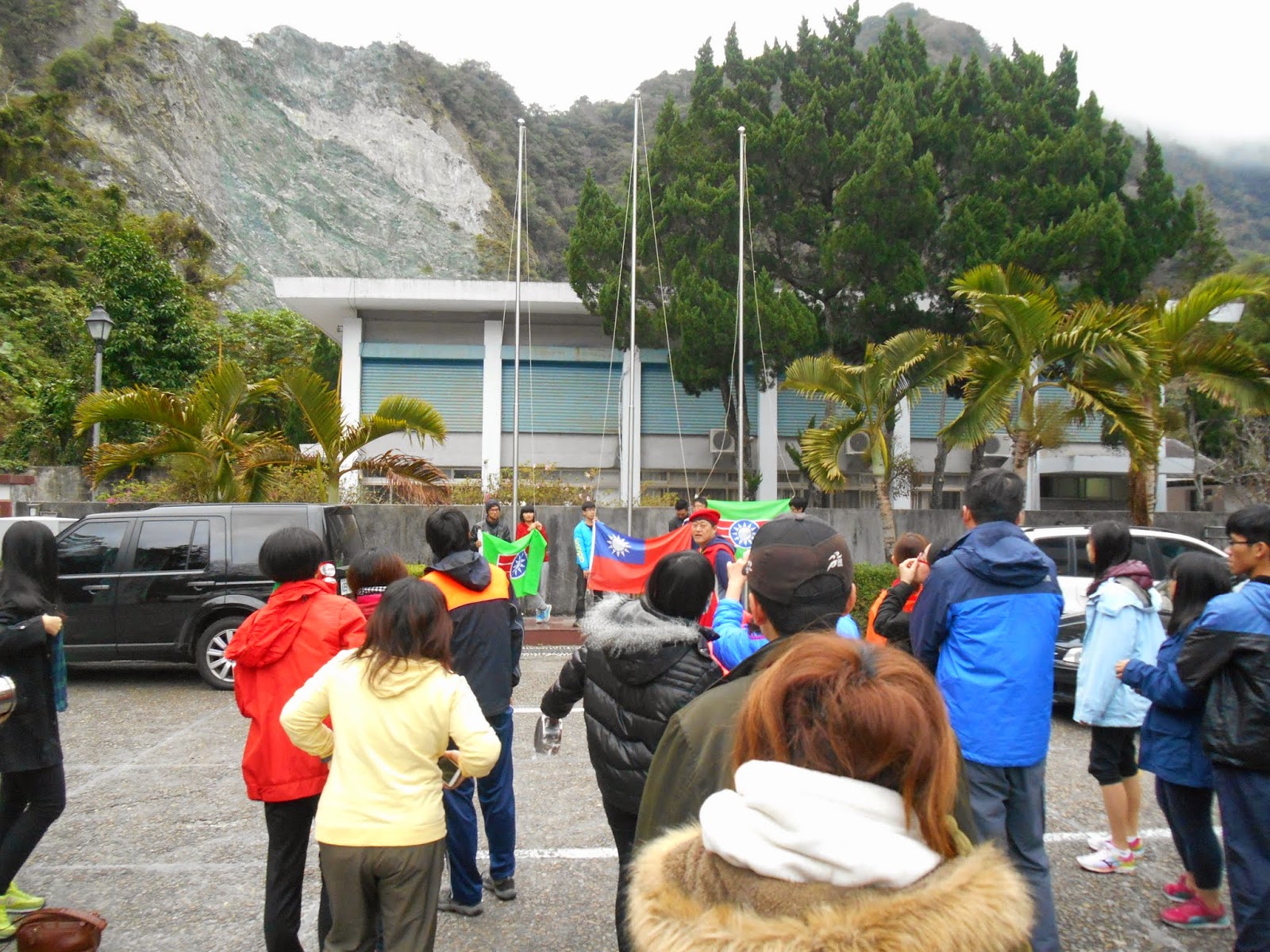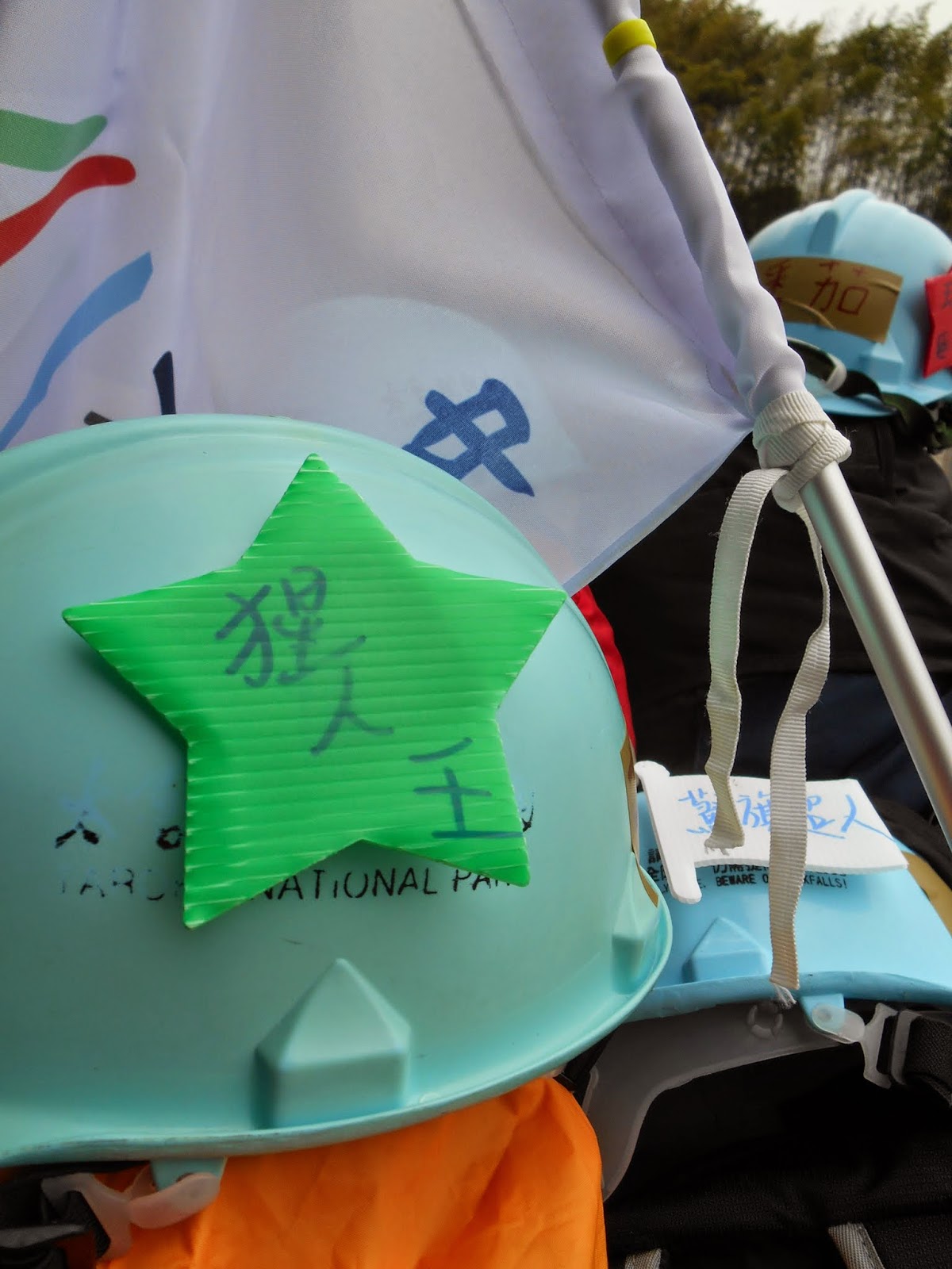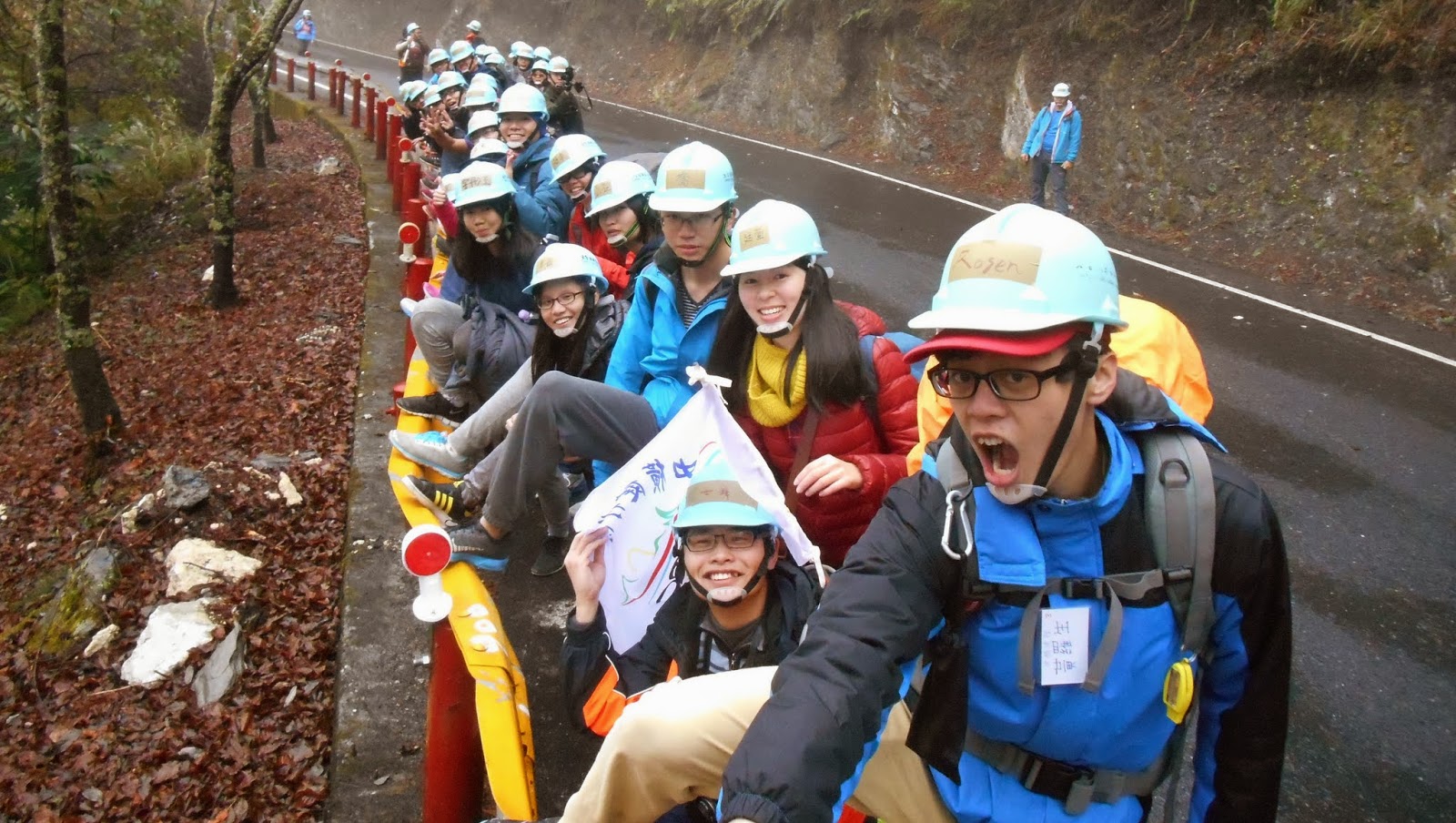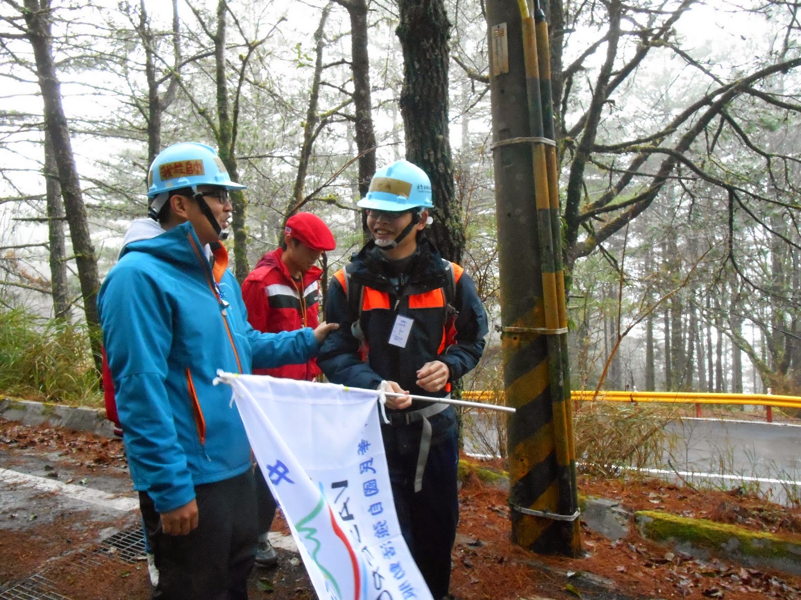 同行友人被任命為掌旗官。 掌旗官座右銘:「旗在人在,旗不在就找回來。」 結果出發後旗子就不見了...被插在路上的電線桿上XD |