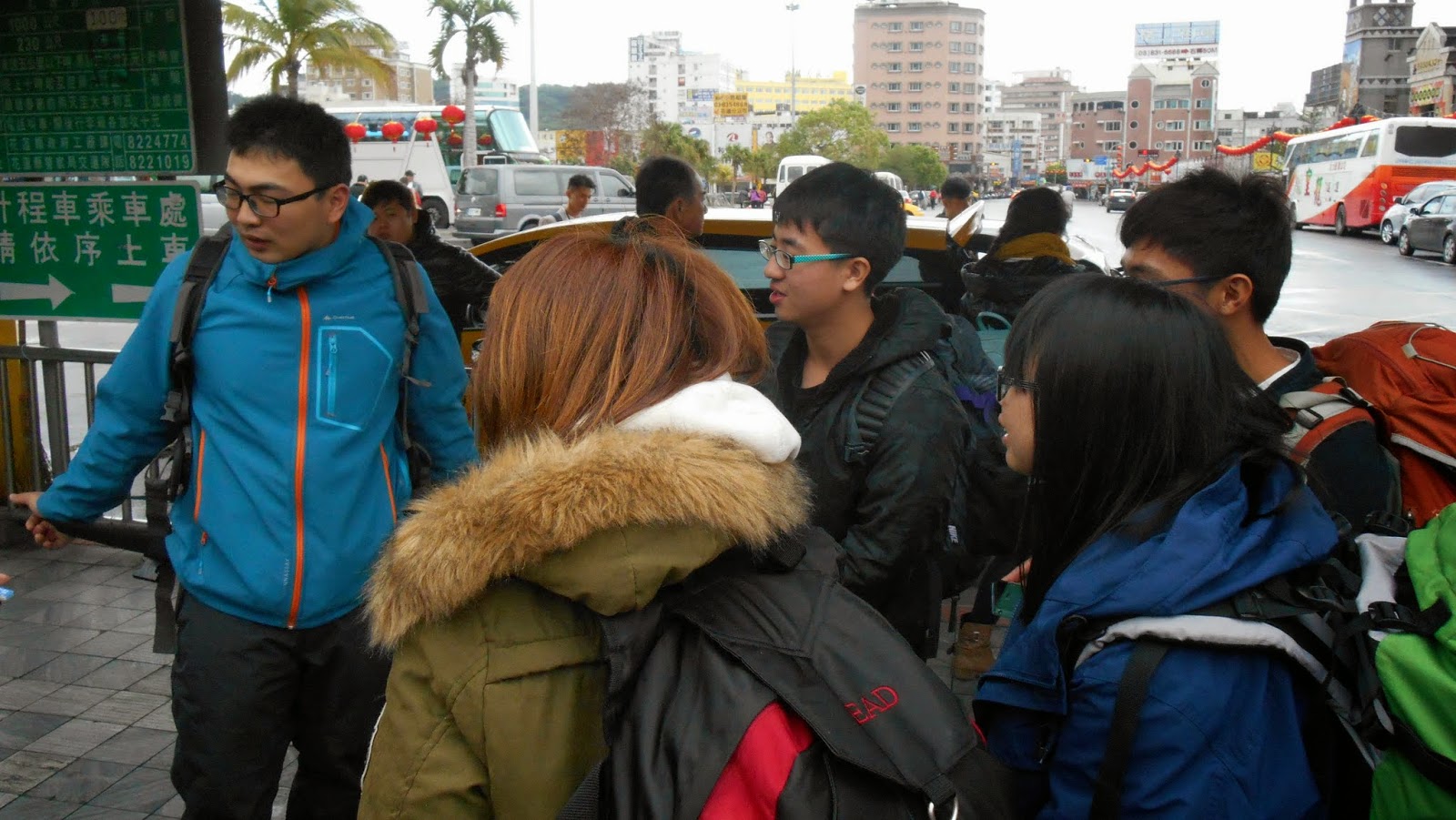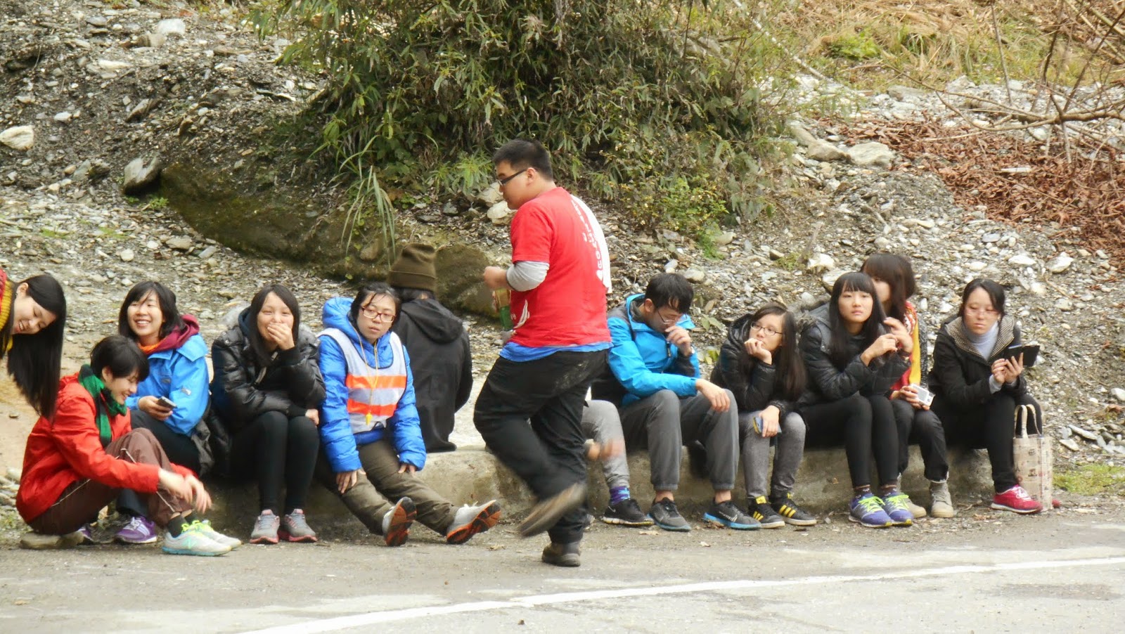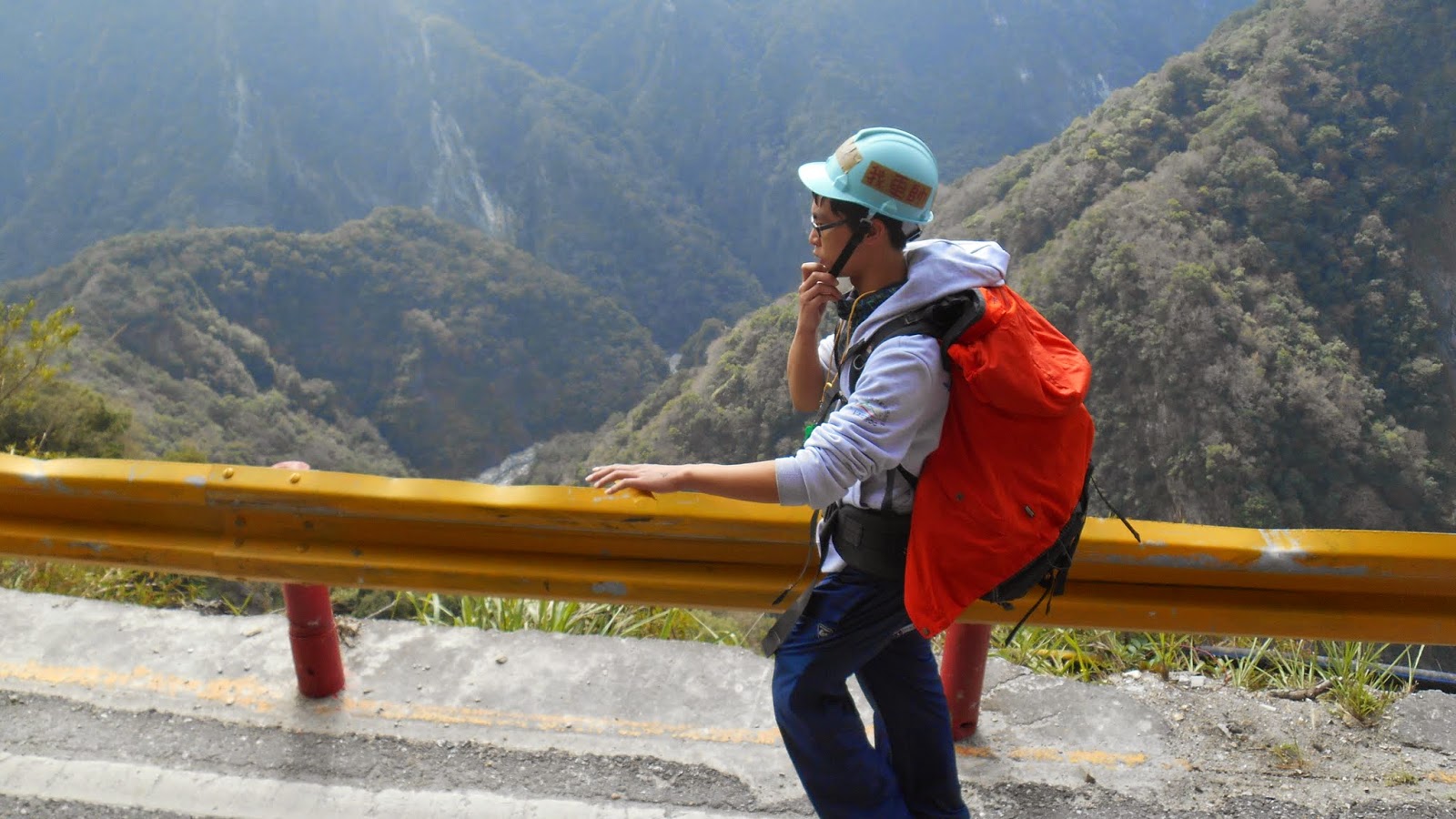我們在綠水步道外休息,而領隊兄在一旁警戒。 很可惜因為夥伴身體不舒服,所以最後沒有走綠水合流步道。 |
