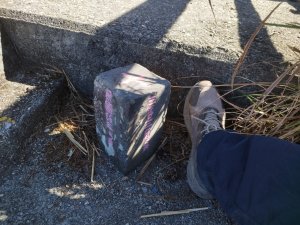 (和平)和平~1(走約55公尺後,在路右園中看到基石連同水泥基座被置放)