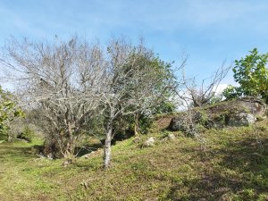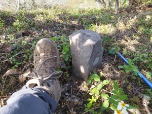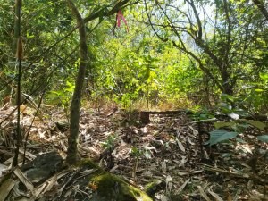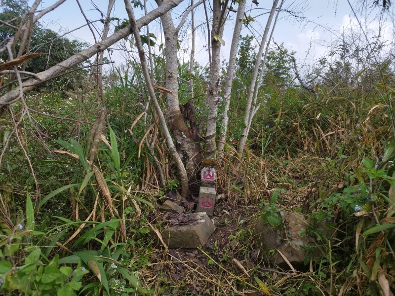 玉打山群~12(山頂雜草一片,基石靠在一棵白樹幹果樹旁,若沒有正確的定位會不太好找)